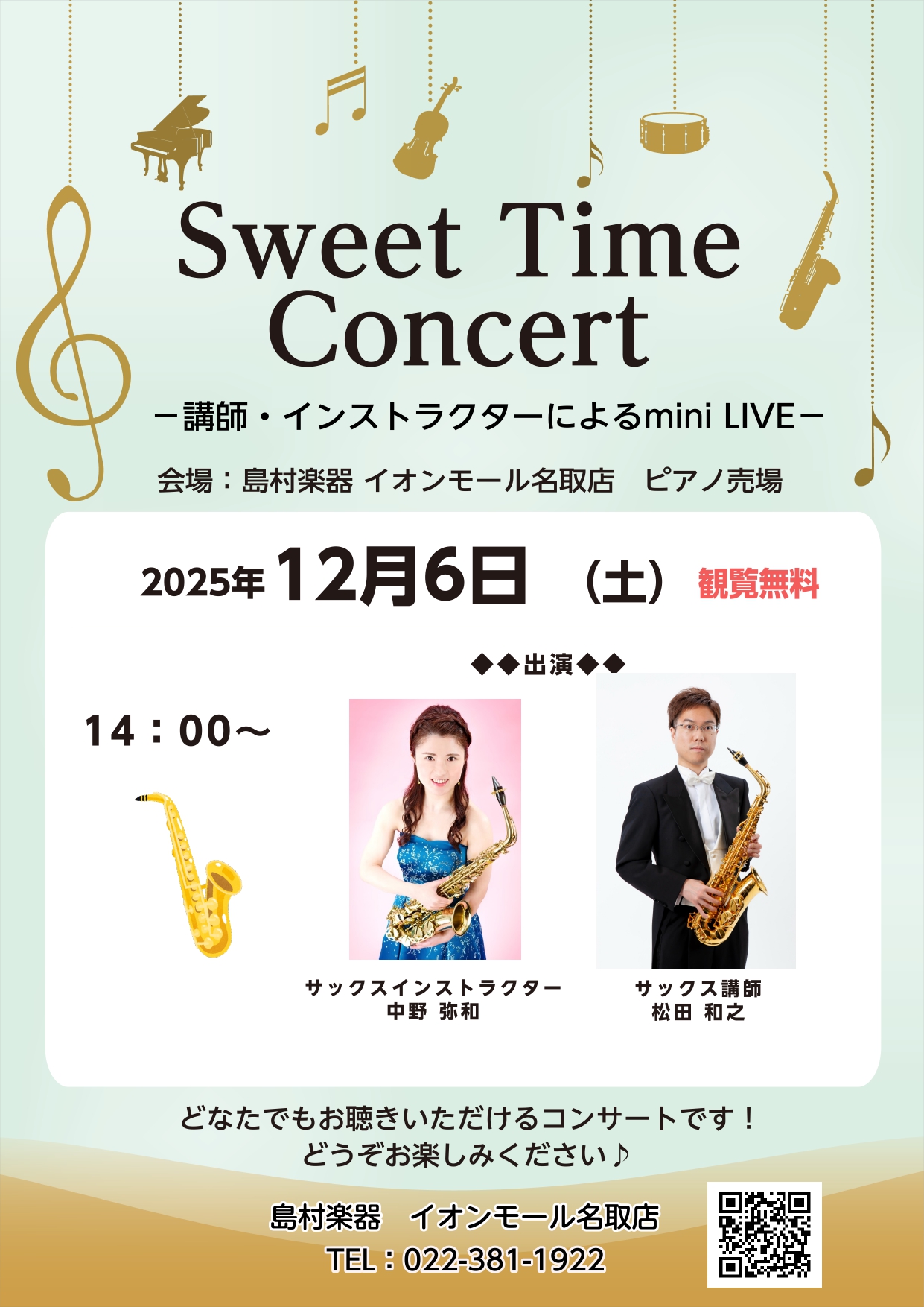 【12/6(土)開催】Sweet Time Concertをお楽しみください!