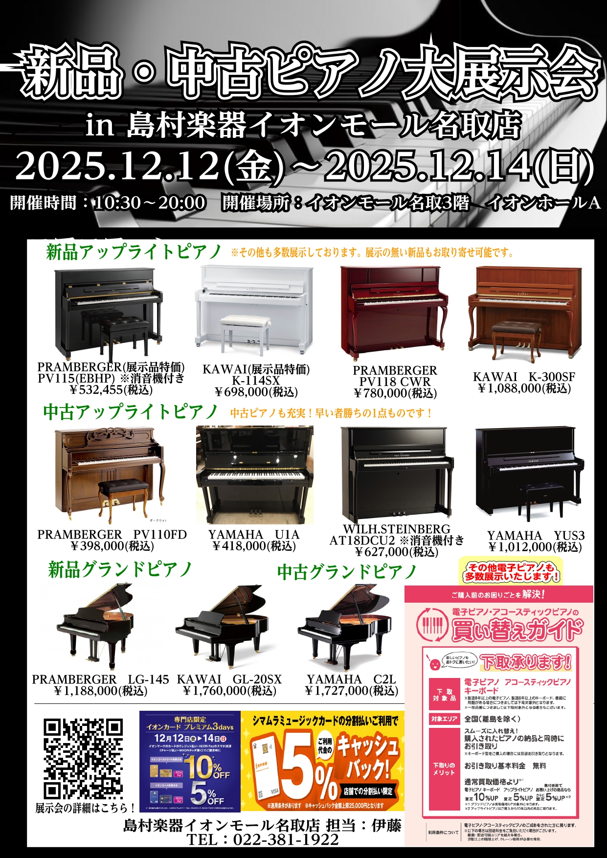 【12/11更新】12/12(金)~12/14(日)ピアノ大展示会開催!