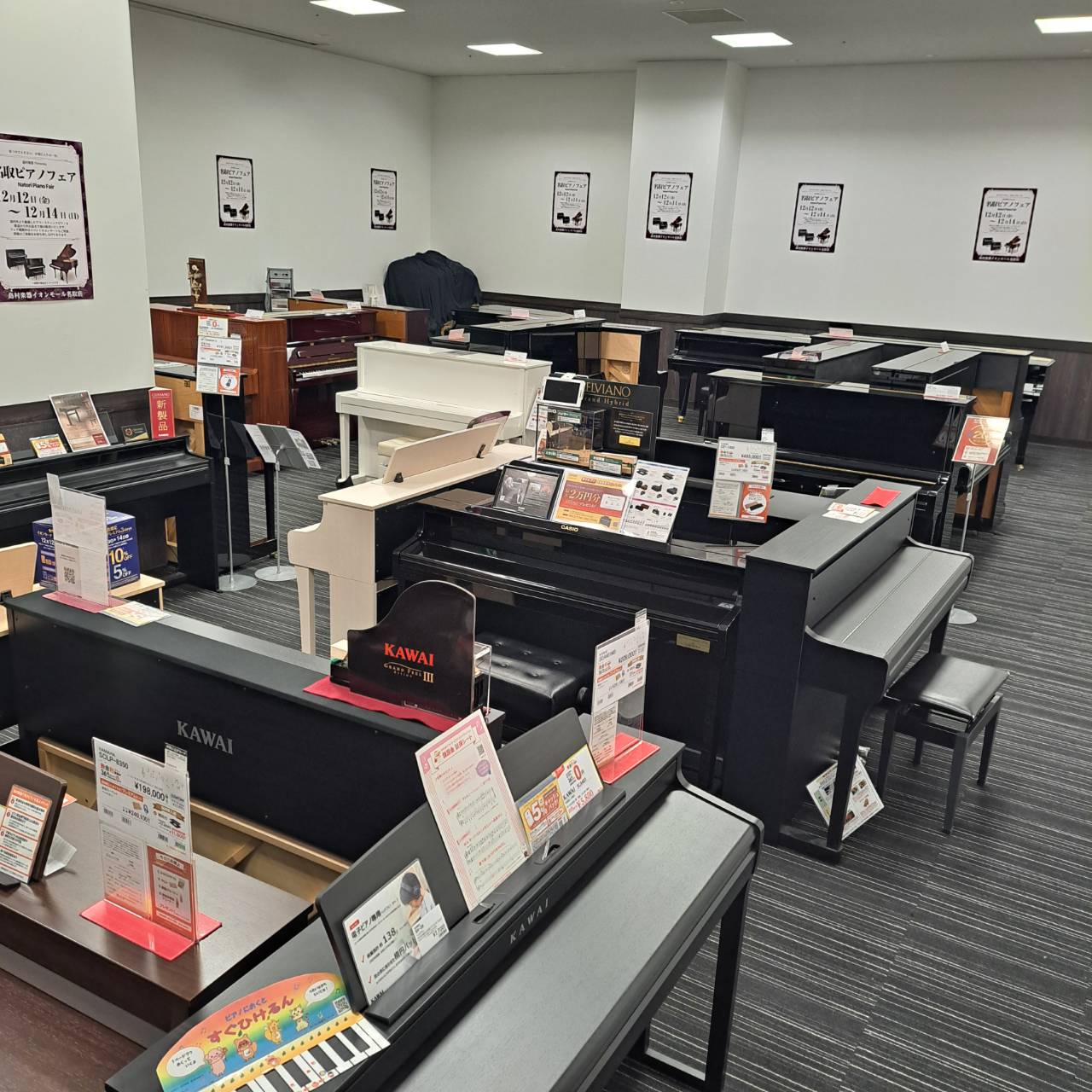 今回はイオンホールでの開催!静かな場所で音の違いを比べていただく事も可能ですし、グランドピアノも期間限定展示します!この機会をお見逃しなく!