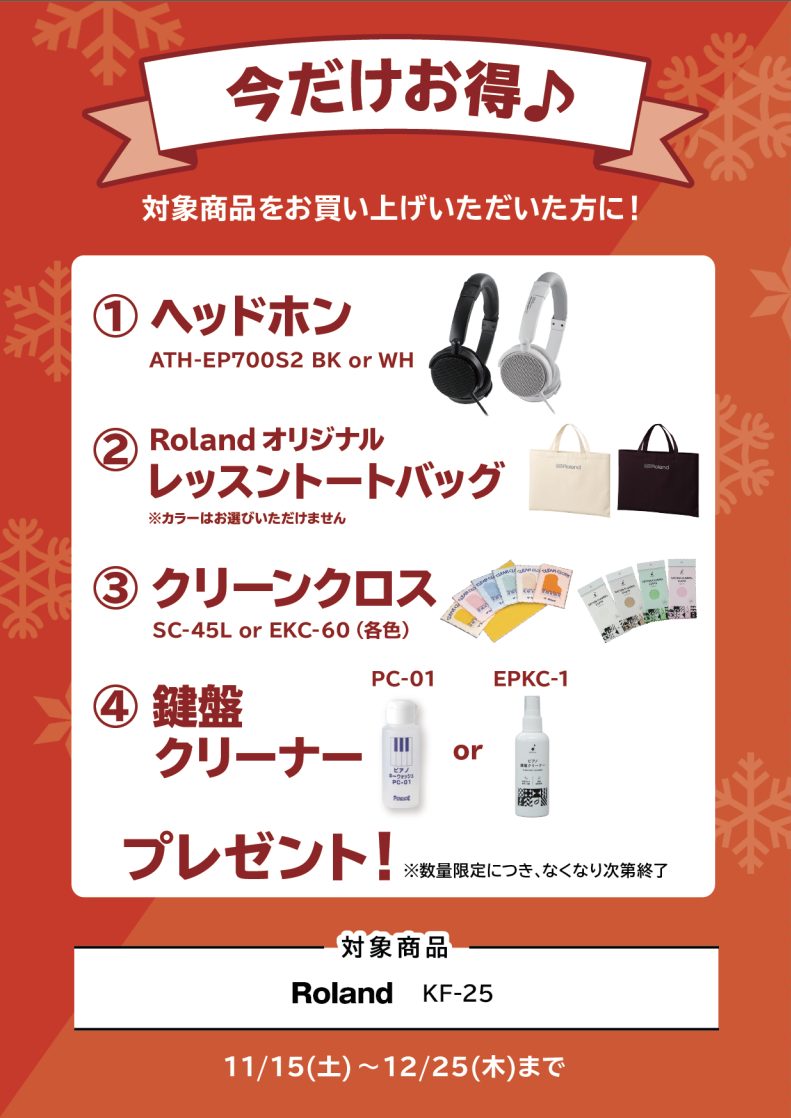 【11/28更新・電子ピアノ】クリスマスフェア2025開催!期間限定のお得な特典に加え、各種1台限定のアウトレットピアノも揃えました!