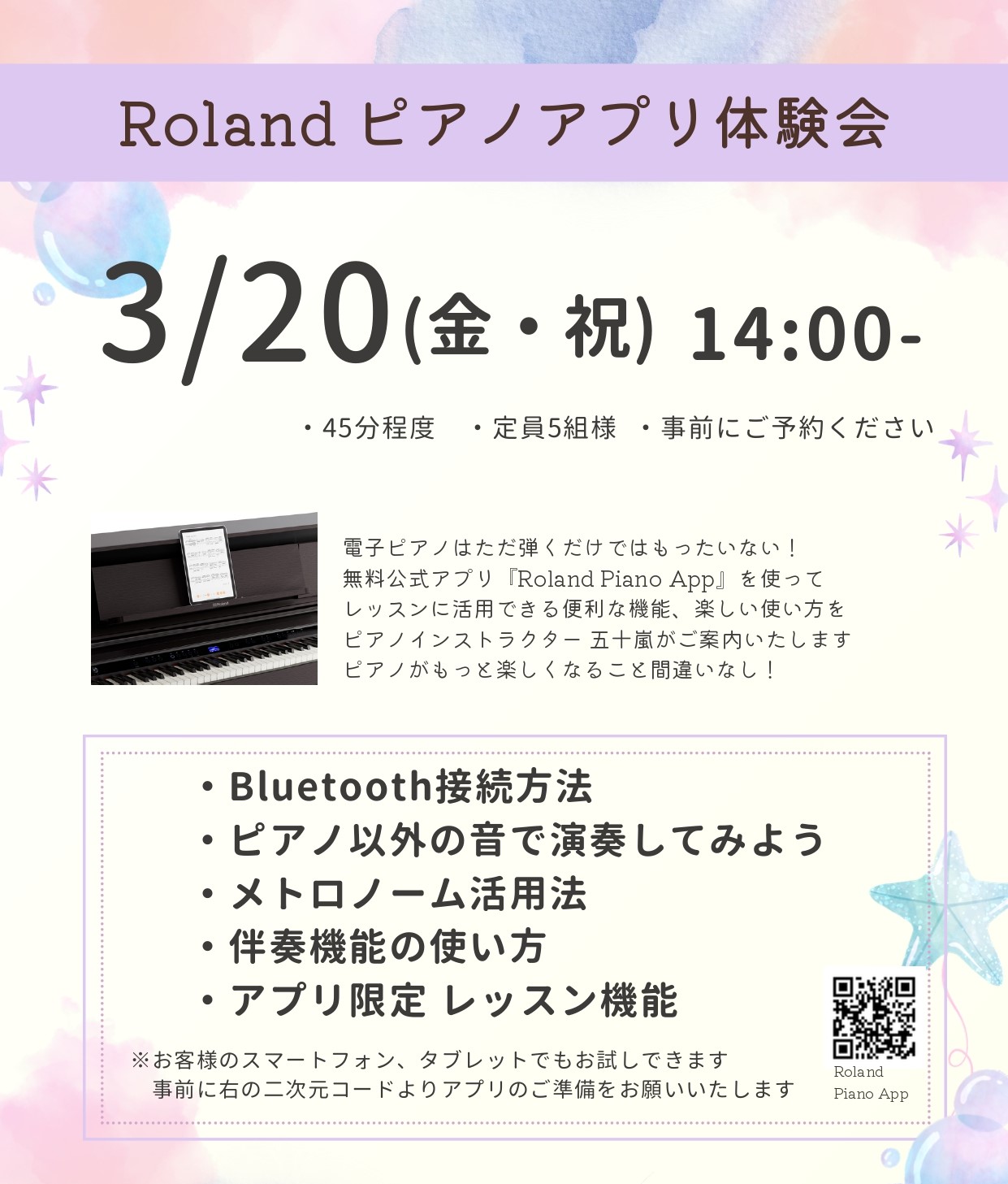 Rolandの電子ピアノと無料公式アプリ『Roland Piano App』を使用してピアノがもっと楽しくなる体験会を開催!