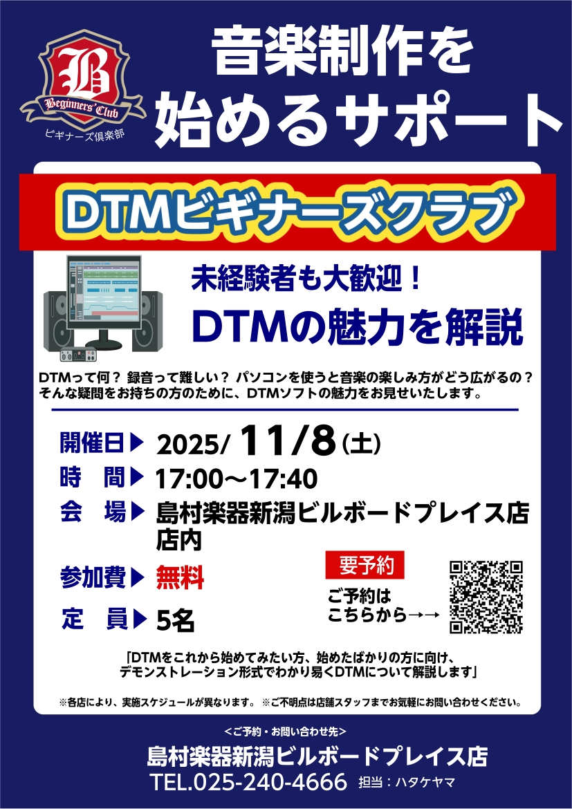 ![CONTENTSDTMビギナーズとは予約制となりますDigiland CREATORS 新潟 開催中!DTMビギナーズとは これからDTMを始めたい方、DTMを始めたけれど何から手を付けて良いのか分からない方へ、DTMで出来ることを分かり易くレクチャーすることを目的としています。 予約制となります […]](https://www.shimamura.co.jp/shop/niigata/wp-content/uploads/sites/44/2024/07/20240715-product_shima240705-0090-1_template_pdf-1_page-0001-1-2.jpg)