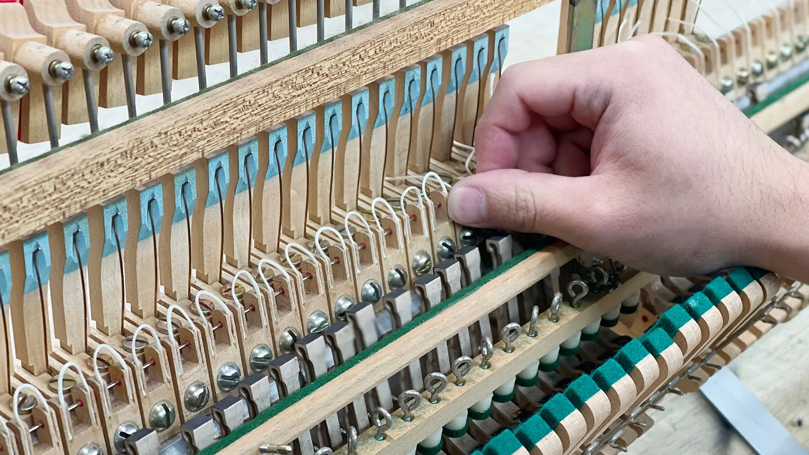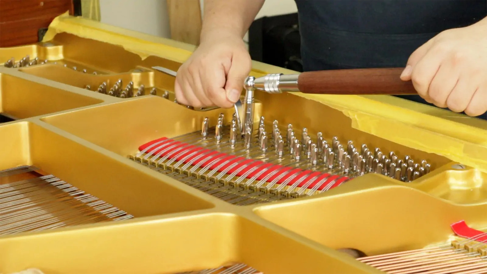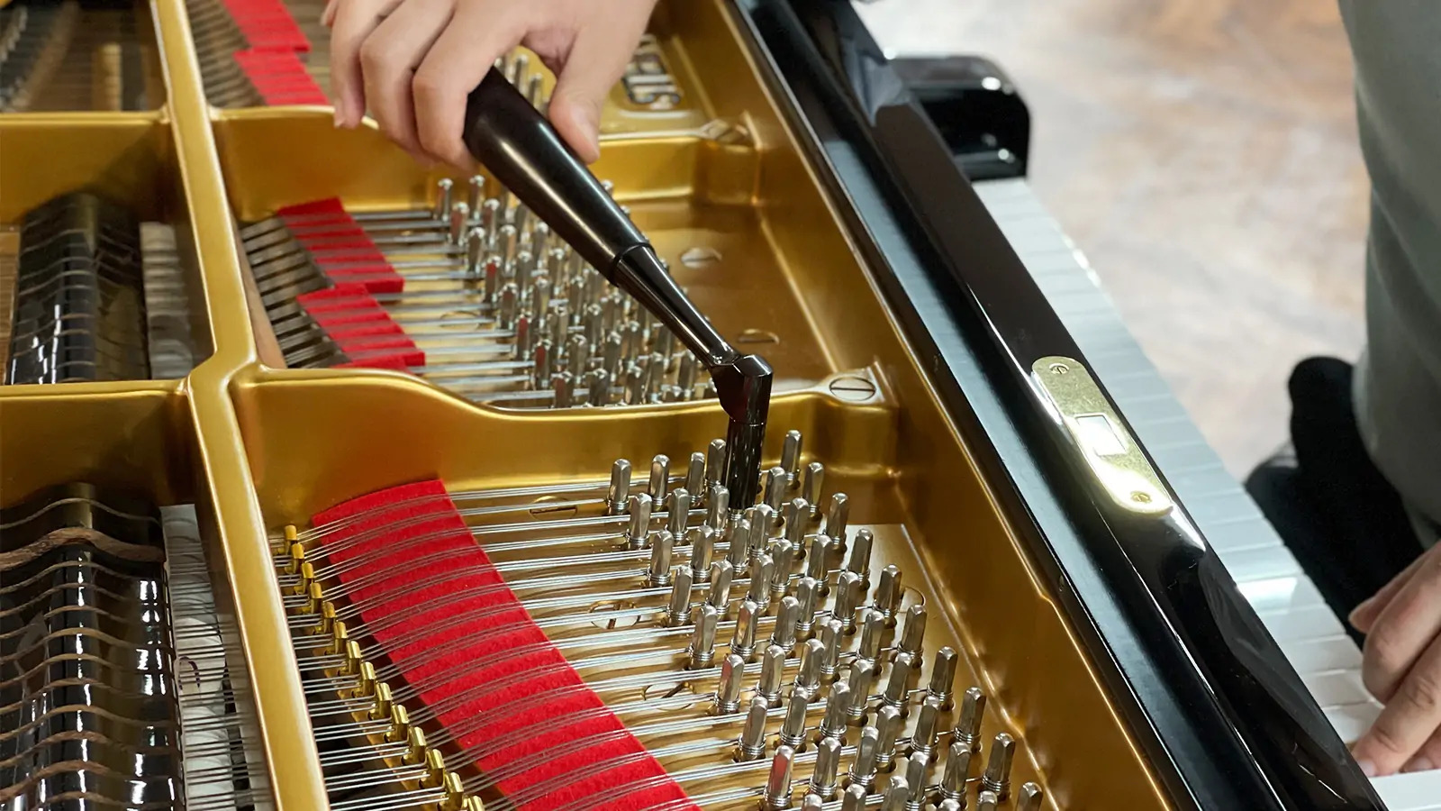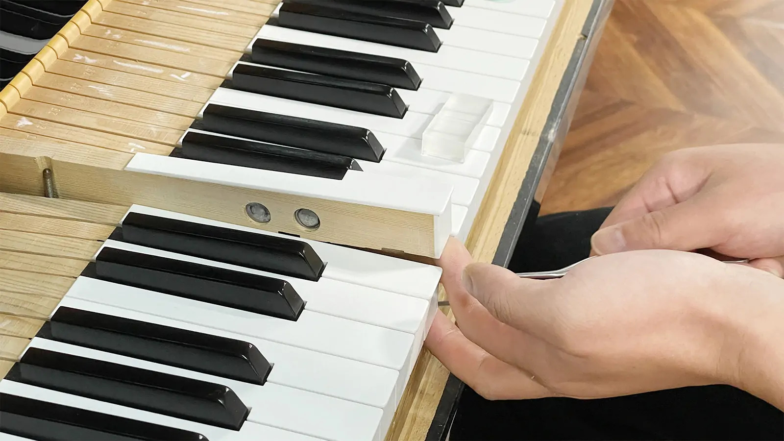 鍵盤の高さや深さ、ハンマーの動きをミリ単位で調整します。指先のタッチが音にダイレクトに伝わるようになります。