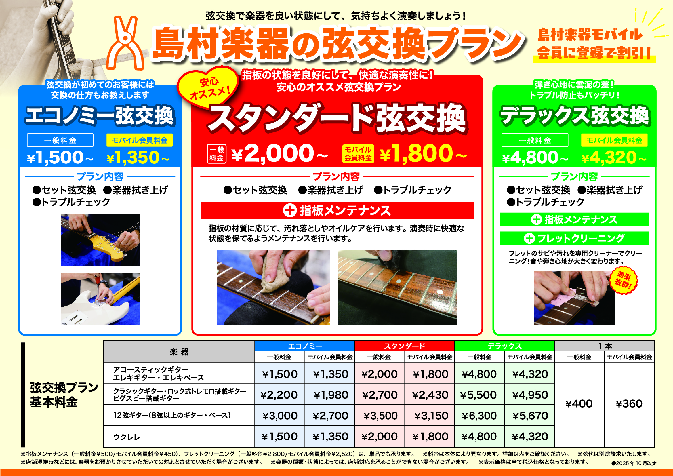 楽器 | 全弦交換 一般料金 | 全弦交換モバイル会員 |