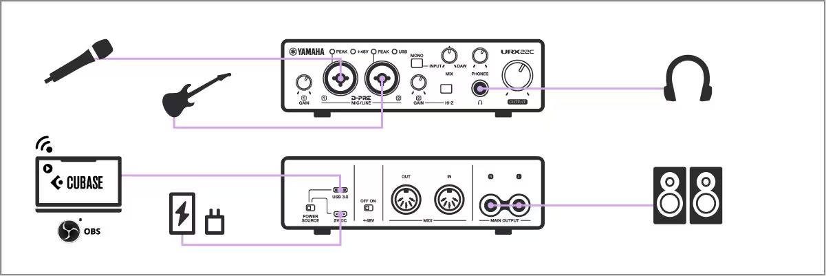 高い互換性を誇るSteinbergソフトウェアとの組み合わせによりURX22Cは高品質な録音と配信をシンプルに実現。