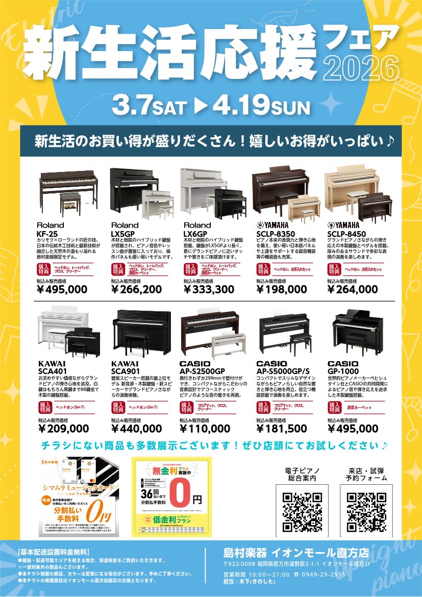 【電子ピアノ総合案内】2026/3/12更新🎹新生活応援フェア開催中🌸