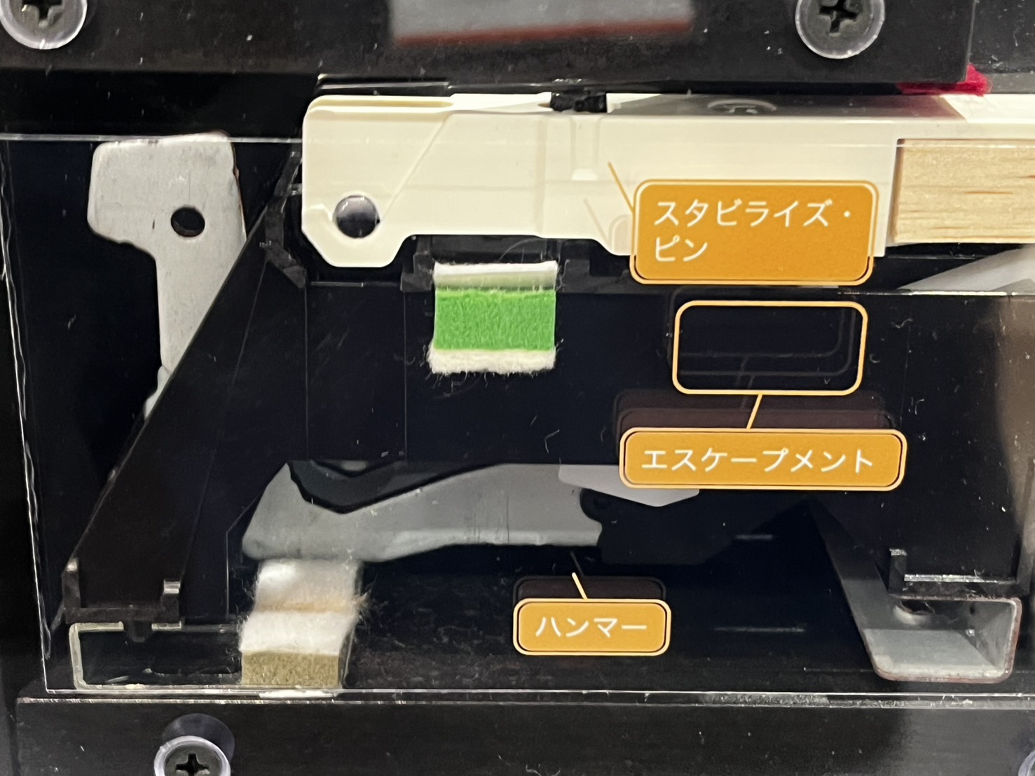 弾いていない時のハンマー(銀色)