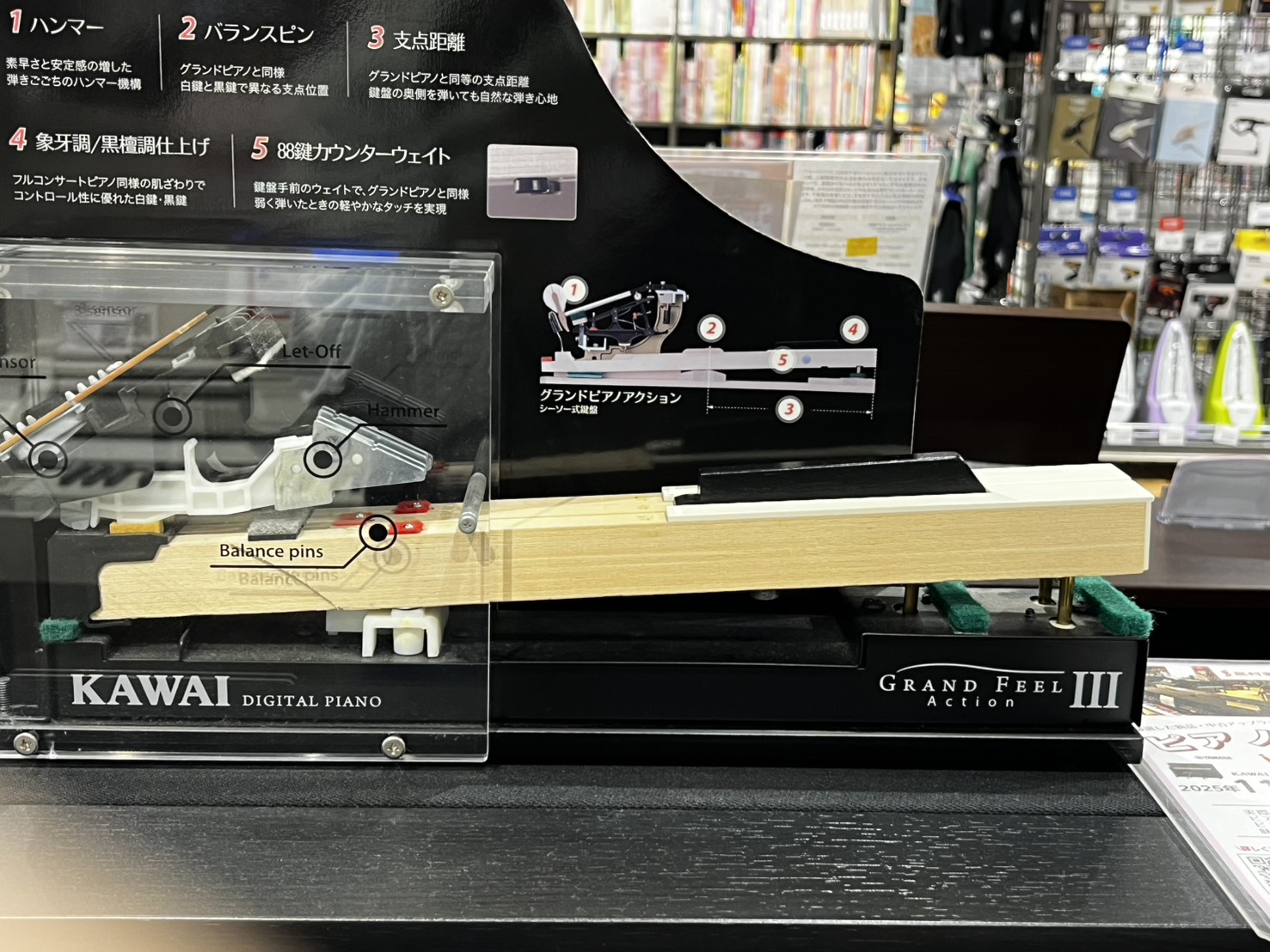 グランドピアノの鍵盤の支点から力点までの距離を再現しているモデル(左)や、グランドピアノの鍵盤の構造を模しているモデル(右)まで。