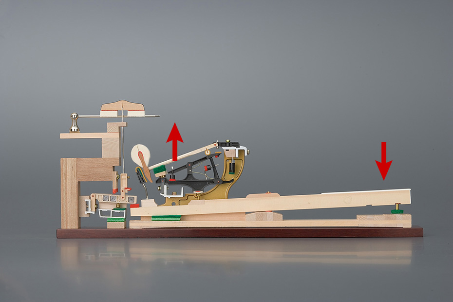 上の画像は実際のグランドピアノに搭載されているアクション(内部機構)です。