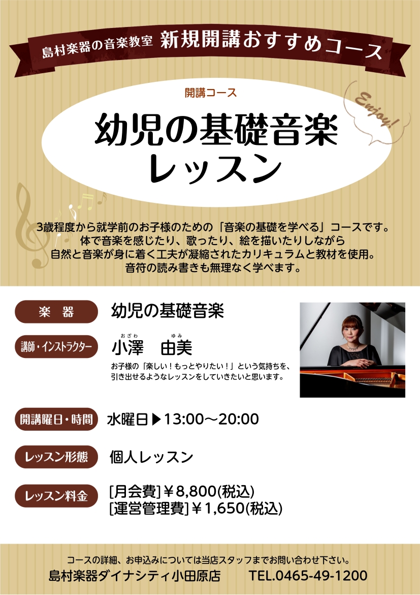 島村楽器小田原店では、3歳程度から就学前のお子様のための『幼児の基礎音楽レッスン』がございます♪