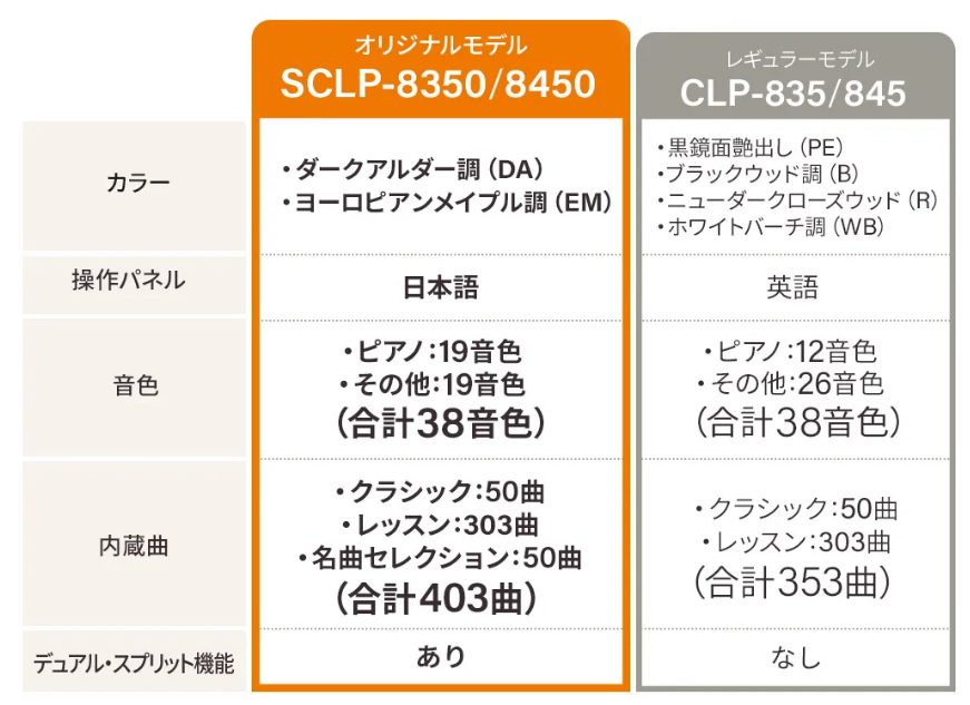 SCLPはそれぞれヤマハの『CLP845』『CLP835』をベースにしております。