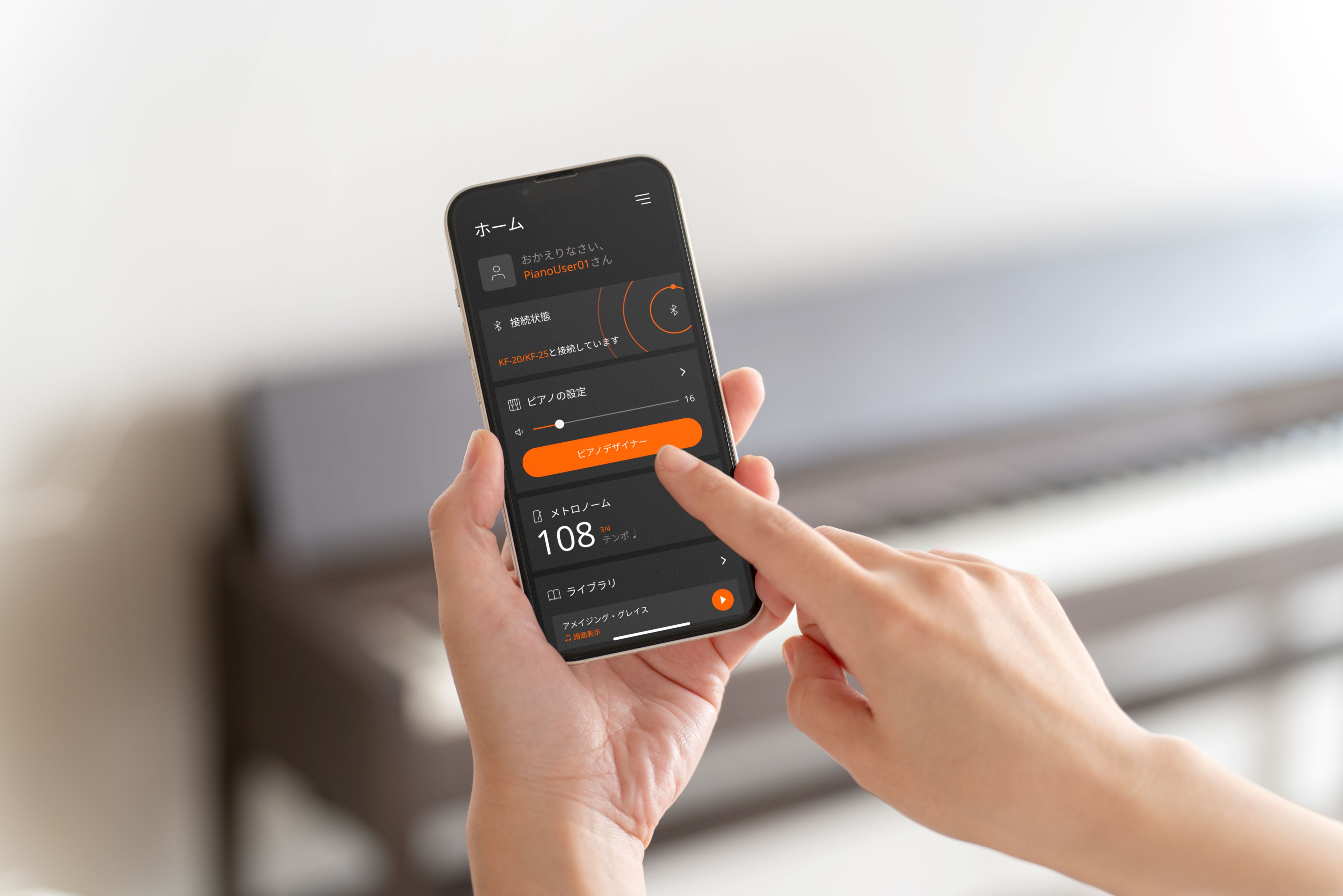 専用アプリ『Roland Piano App』では、内蔵曲を再生したり音色やメトロノーム、細かなピアノ設定も簡単に。
