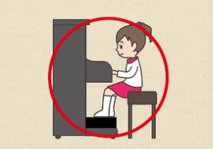 ③椅子の高さは足の裏全体が床に着き、演奏をするときに肘の角度が約90度になるようにしましょう。