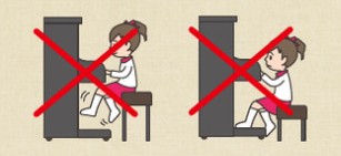 逆に椅子を低くして足が床に着くようにすると、体に対して鍵盤の位置が高くなり肘の角度も非常に鋭くなってしまいます。