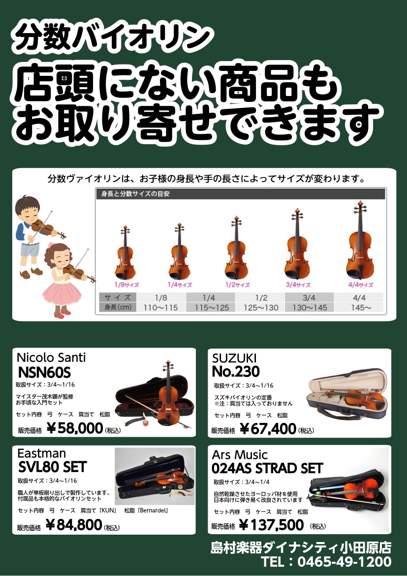 ![島村楽器ダイナシティ小田原店では、常時バイオリンの展示を行っております。実際に触って音を出してみることもできますので、是非一度ご来店いただけたらと思います。 CONTENTSラインナップのご紹介弦楽器アクセサリー・楽譜分数バイオリン取り寄せできますお問い合わせラインナップのご紹介 弦楽器アクセサリー […]](https://www.shimamura.co.jp/shop/odawara/wp-content/uploads/sites/214/2026/03/20260316-img_7430.jpg)