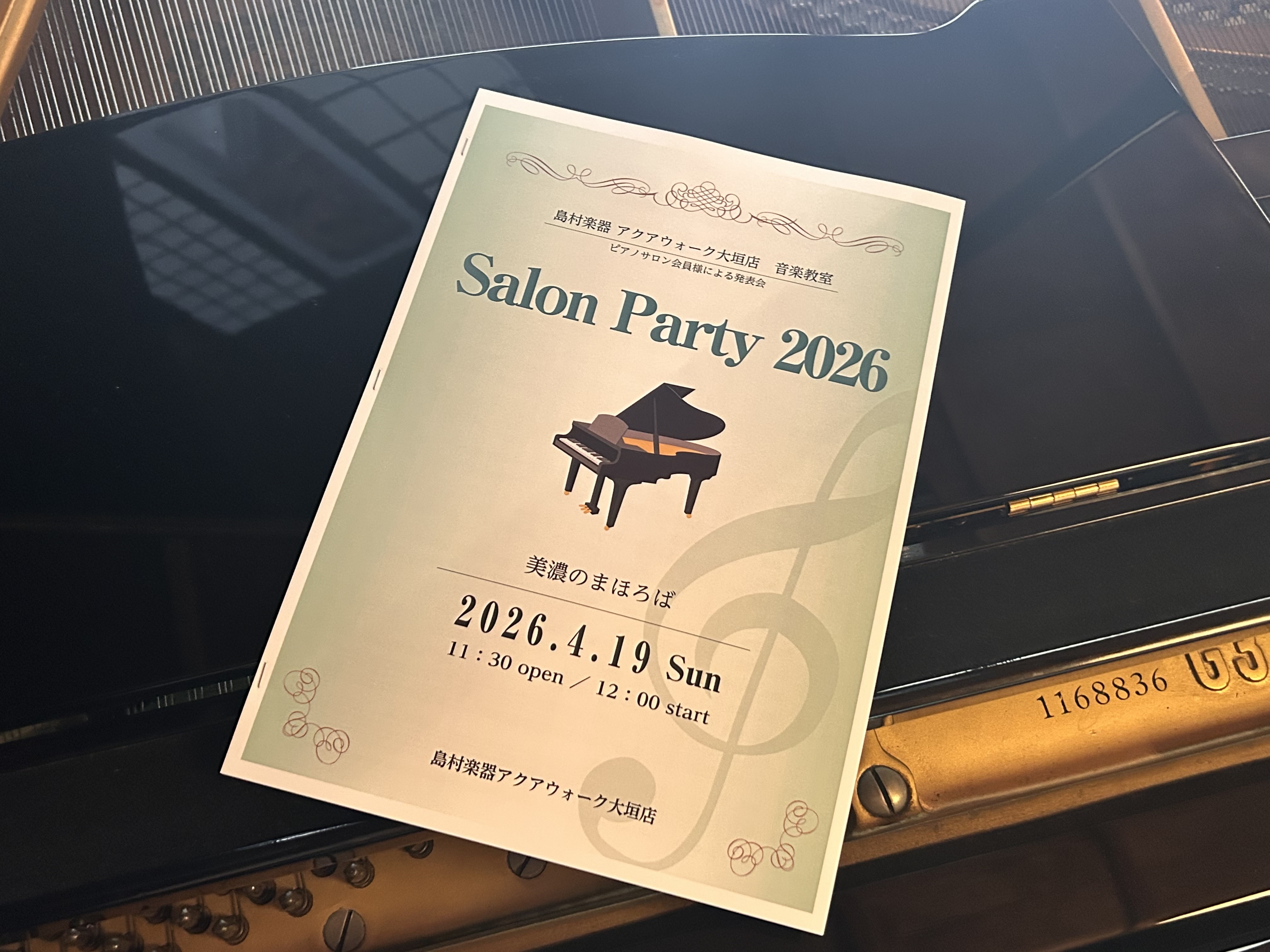 CONTENTSサロンパーティー2026《4月19日》イベントレポートピアノサロンとは?お問合せサロンパーティー2026《4月19日》 🎹今回も岐阜県本巣市にある『美濃のまほろば』さんで開催いたしました。お店の雰囲気もスタッフの皆様も本当に素敵で、心落ち着く穏やかな空間をご提供いただきました。 イベ […]