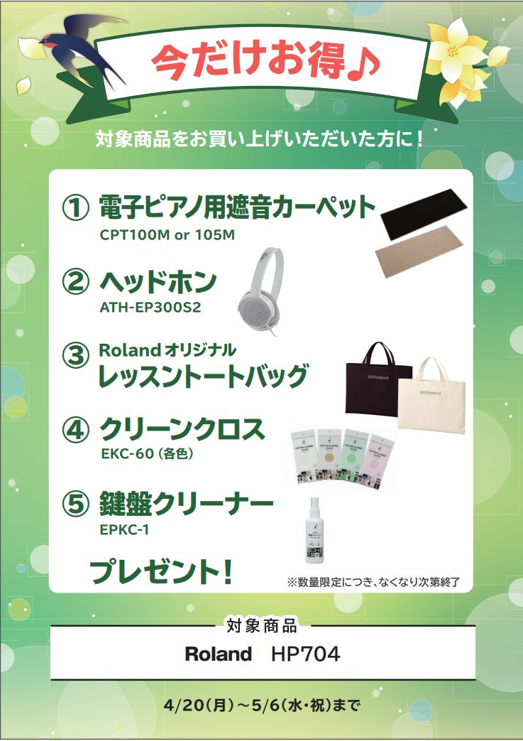 | HP704 | 遮音カーペット/ヘッドホン/オリジナル・レッスントートバッグ/クリーンクロス/鍵盤クリーナー |