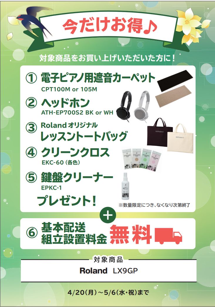 | LX9GP | 遮音カーペット/ヘッドホン/オリジナル・レッスントートバッグ/クリーンクロス/基本据付設置料無料 |