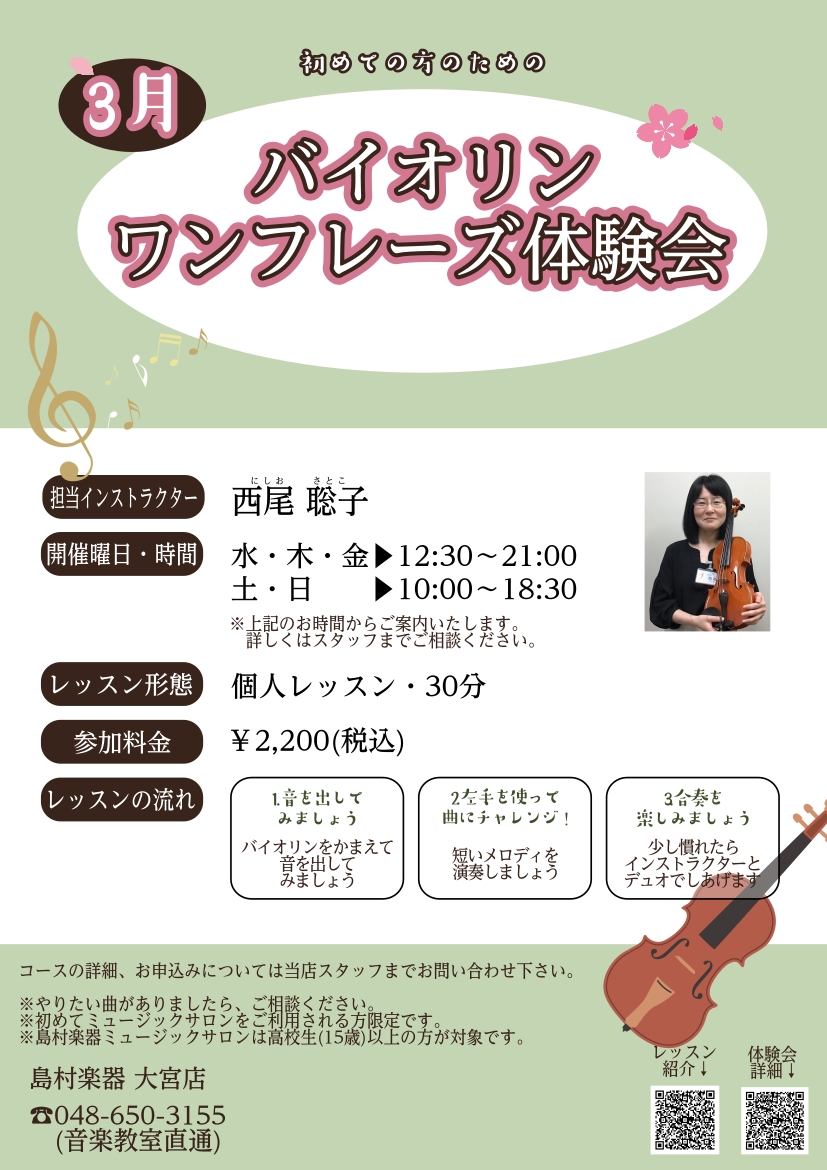 【バイオリン】3月体験会開催のお知らせ【初心者の方大歓迎!】