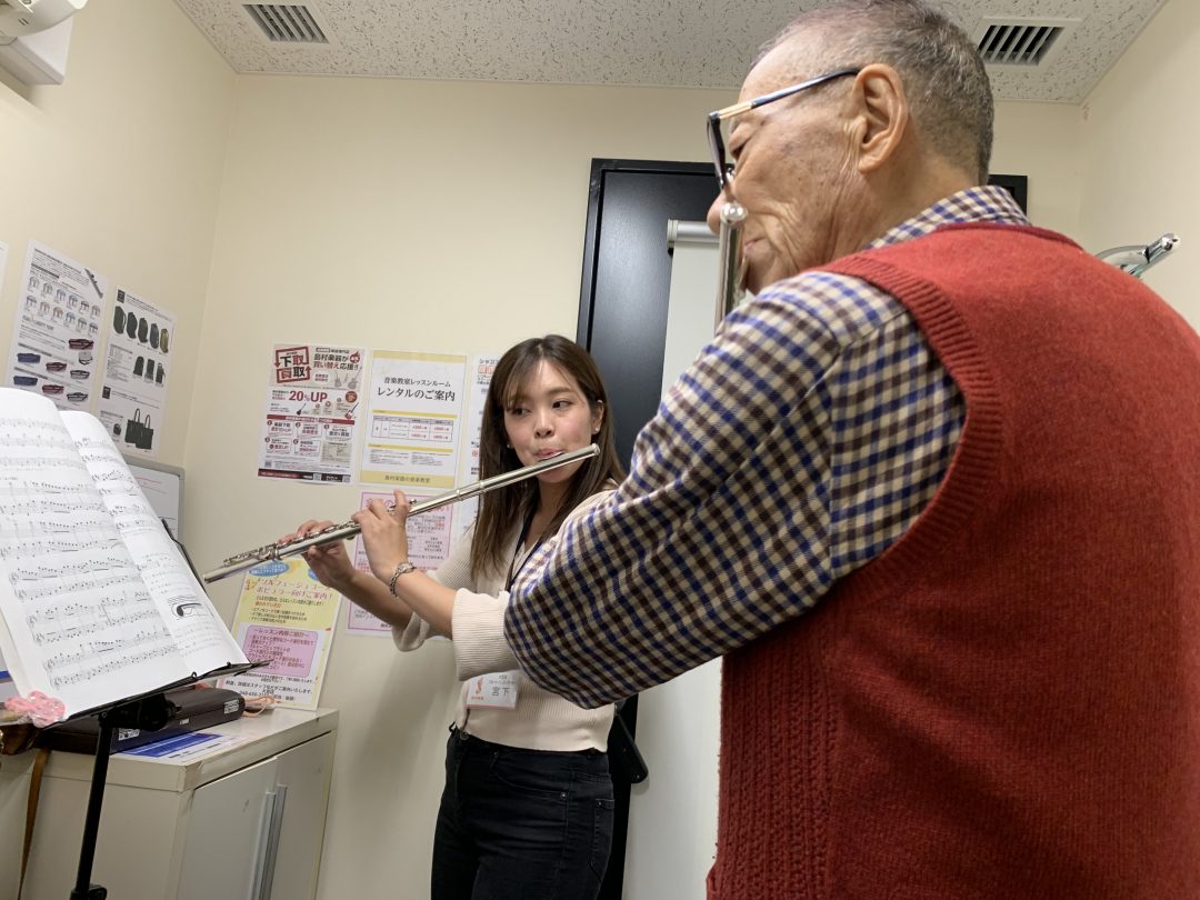 A.「通われている生徒様は、8割が初心者さんなんです!フルートの組み立て方、音の出し方から丁寧に分かりやすく!レクチャーいたしますのでご安心ください♪」 続きはこちら▶