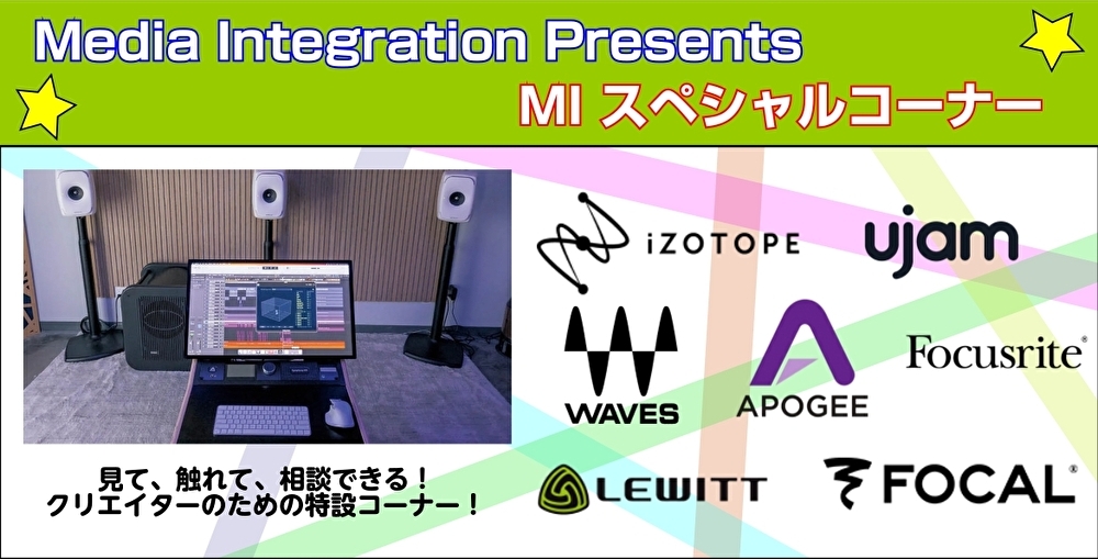 楽曲製作やミュージックエンジニアの間で、世界的なブランドとして名高いApogeeやLewitt、WavesにiZotopeなど、様々なマストアイテムを展開する「メディア・インテグレーション」。
