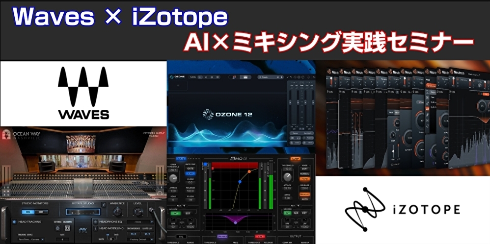 AI体験: Waves「Clarity Vx」やiZotope「RX」によるノイズ除去、「Ozone」「Neutron」のAIアシスタント機能を使い、ワンクリックで音がプロ級に仕上がる様を体験。