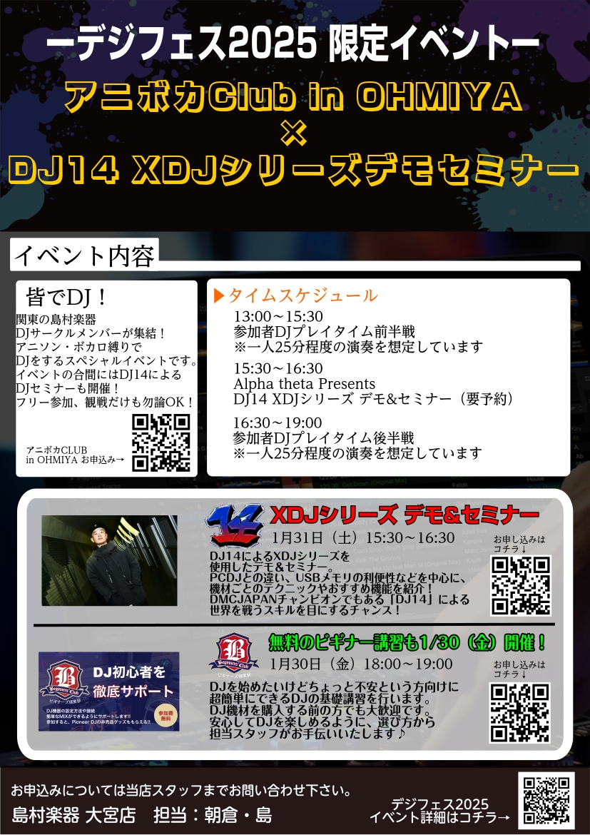 【1/31】DJイベントデー 「アニボカCLUB in OHMIYA」&「Alphatheta Presents DJ14 XDJシリーズデモ&セミナー」開催!