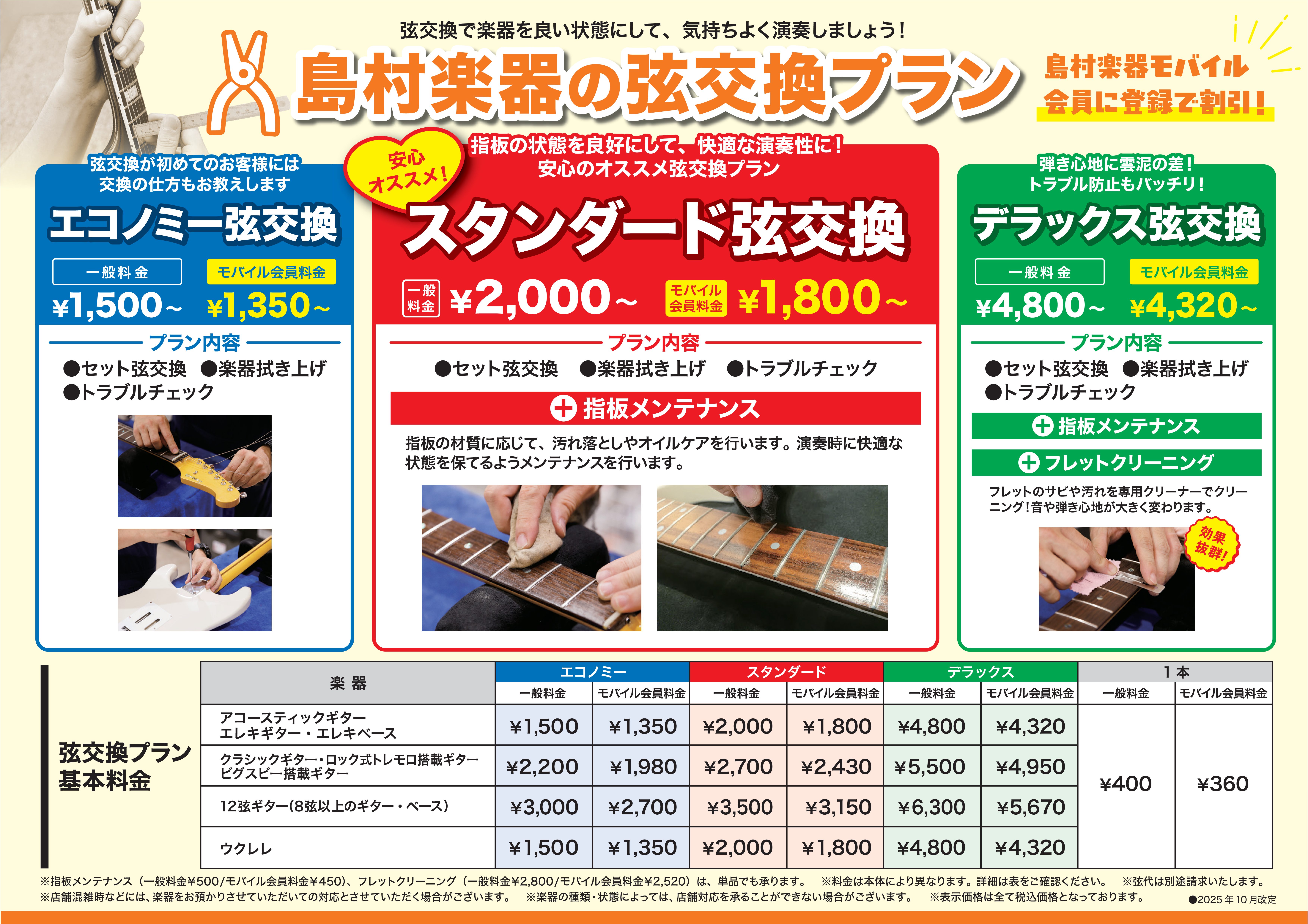 弦交換時にメンテナンス!一般料金(税込)モバイル会員料金(税込)