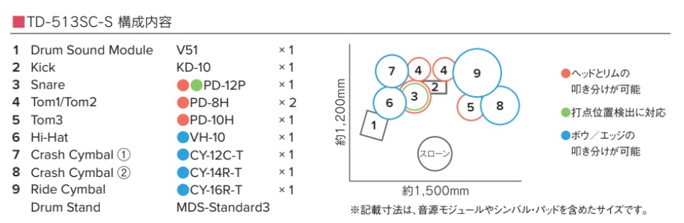 先ほどの「TD313SC-S」が『お部屋サイズの本格派』だとするならば、こちらの「TD513SC-S」は『表現者のためのV-Drums』です。
