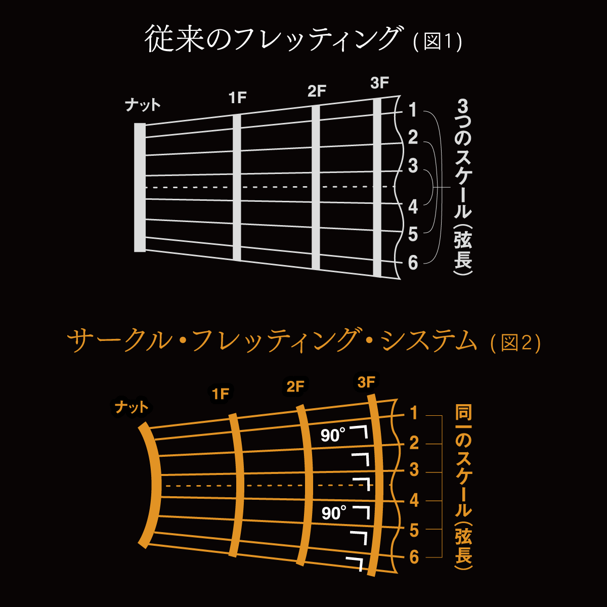 フレットは、僅かに円弧状に打ち込まれたC.F.S.(サークル・フレッティング・システム)を採用。フレットと弦との接点が直交することで、確かな音程感と音抜けの良さを実現しました🌈