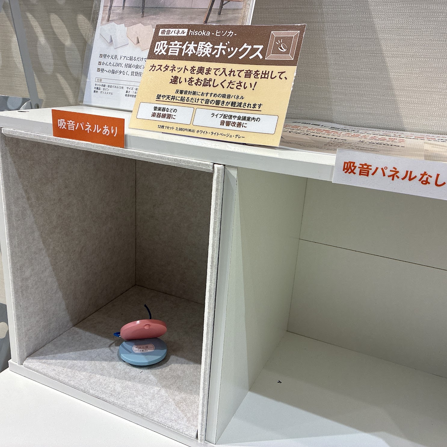 島村楽器パークプレイス大分店には「カスタネット」を使った吸音体験ボックスがあります!鳴らした瞬間に「えっ、こんなに違うの?!」と驚くはずです✊