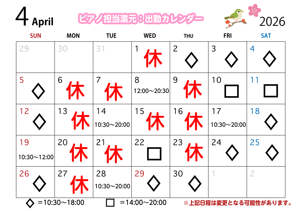 | ピアノ担当 | 濵元(はまもと) |