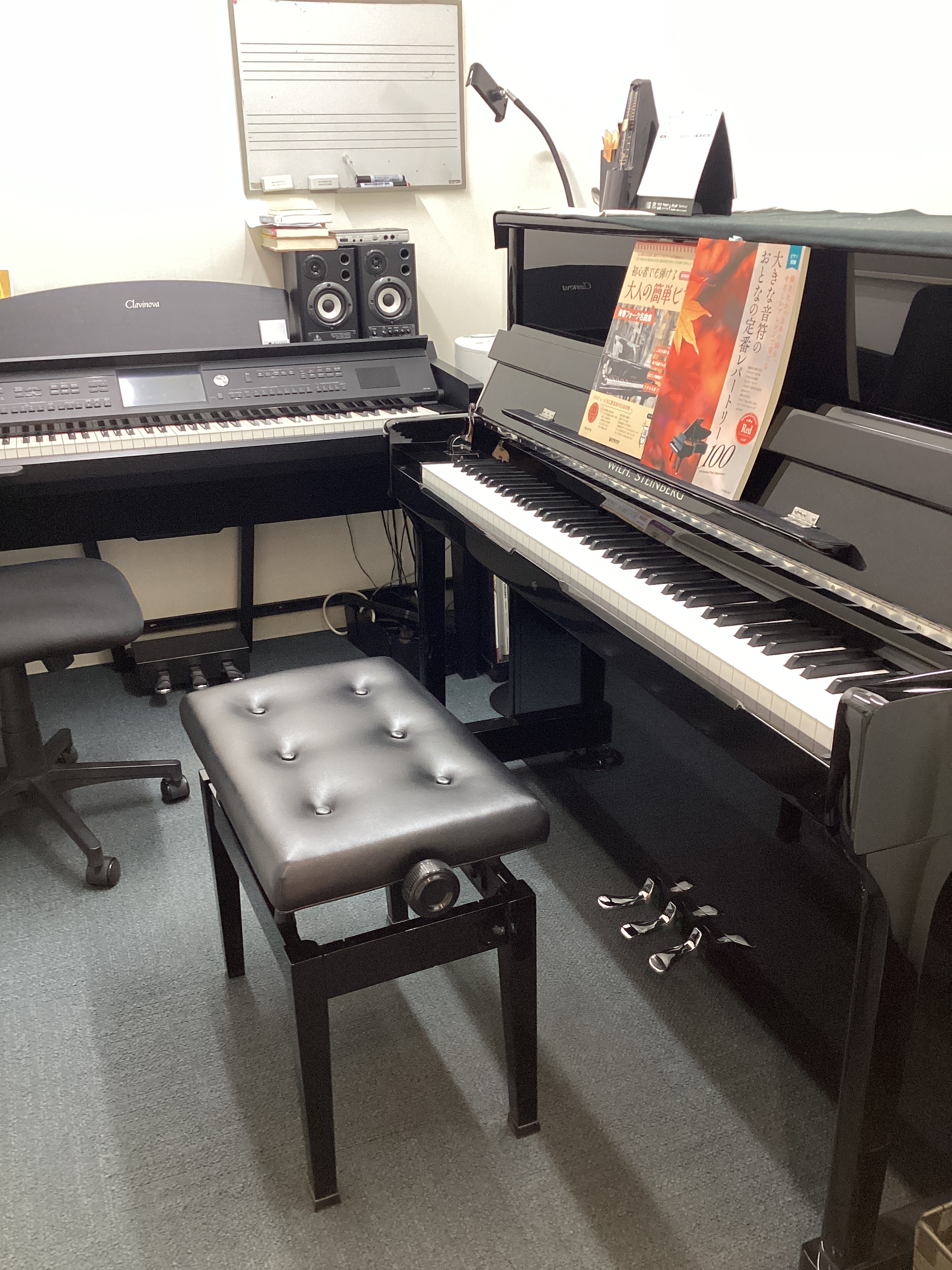 レッスン室内には2台のピアノがありますので、インストラクターが伴奏をしたり見本演奏をすることが多いです。