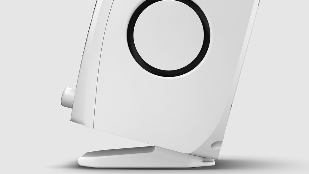 デスクに置いた際、ちょうど耳の高さに音が届くよう設計された「15度傾斜スタンド」が標準で付属しています。