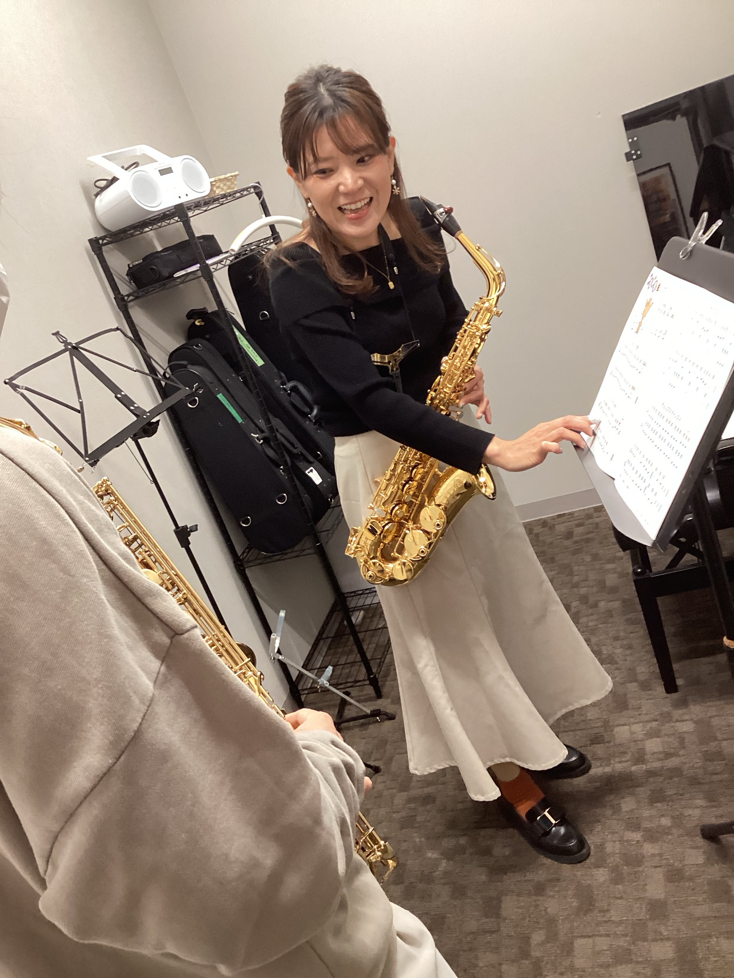 今回は、サックスコースの火曜レッスンを担当している「平良 史子(たいら・ふみこ)先生」にスポットを当て、ご紹介します!