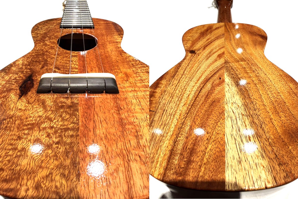 一年間ストックしていたエコ・ハワイアンコアを使用した、地球に優しいウクレレです。