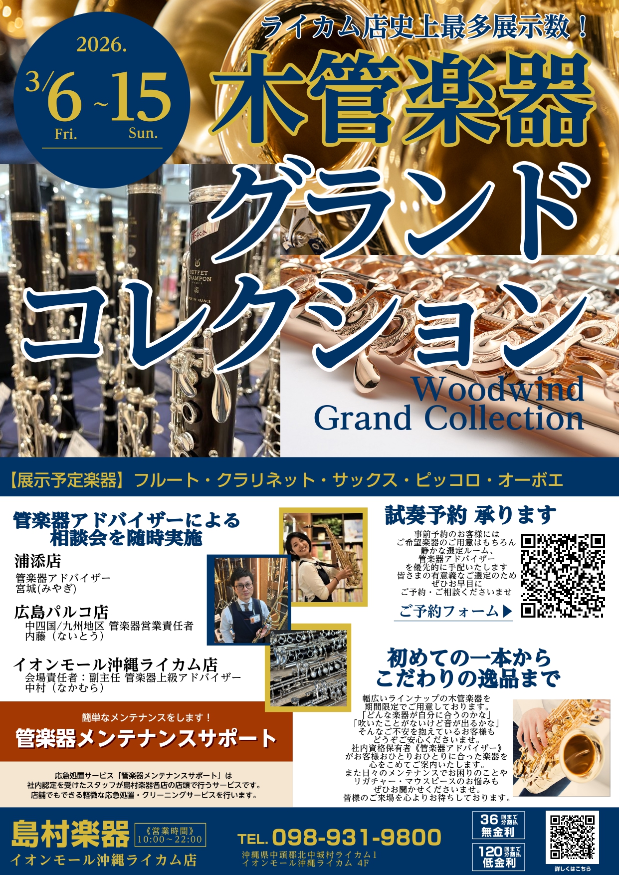 島村楽器 沖縄ライカム店にて、沖縄史上最大級木管楽器フェア