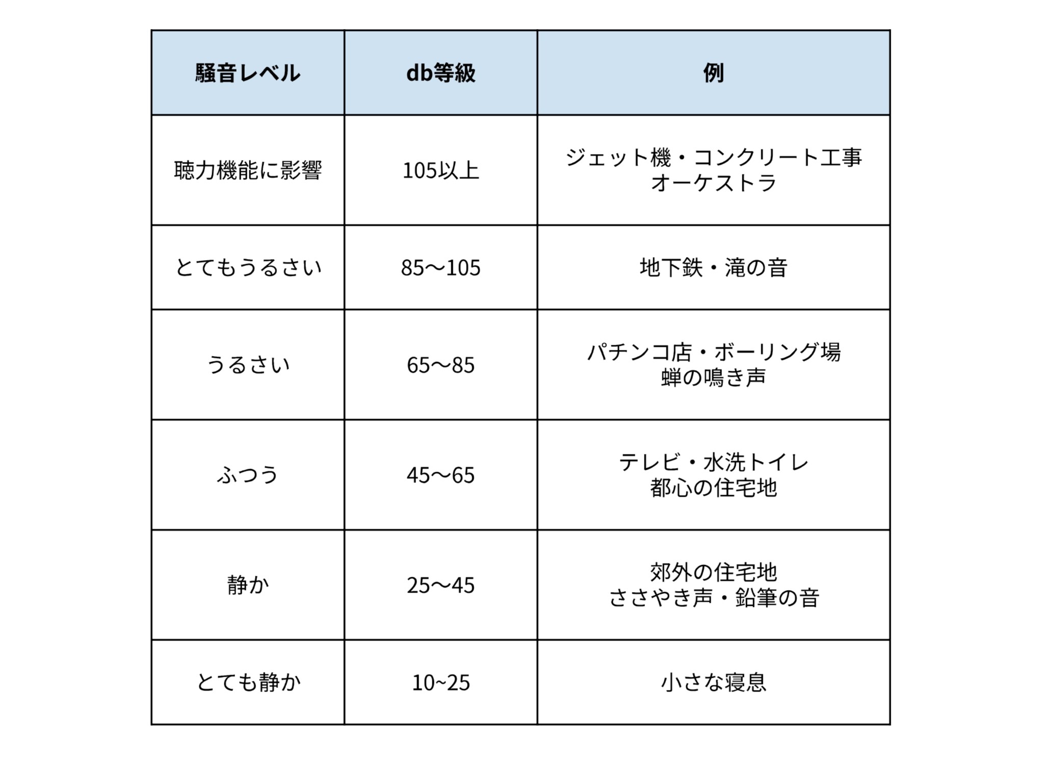 ①デシベル(dB)等級