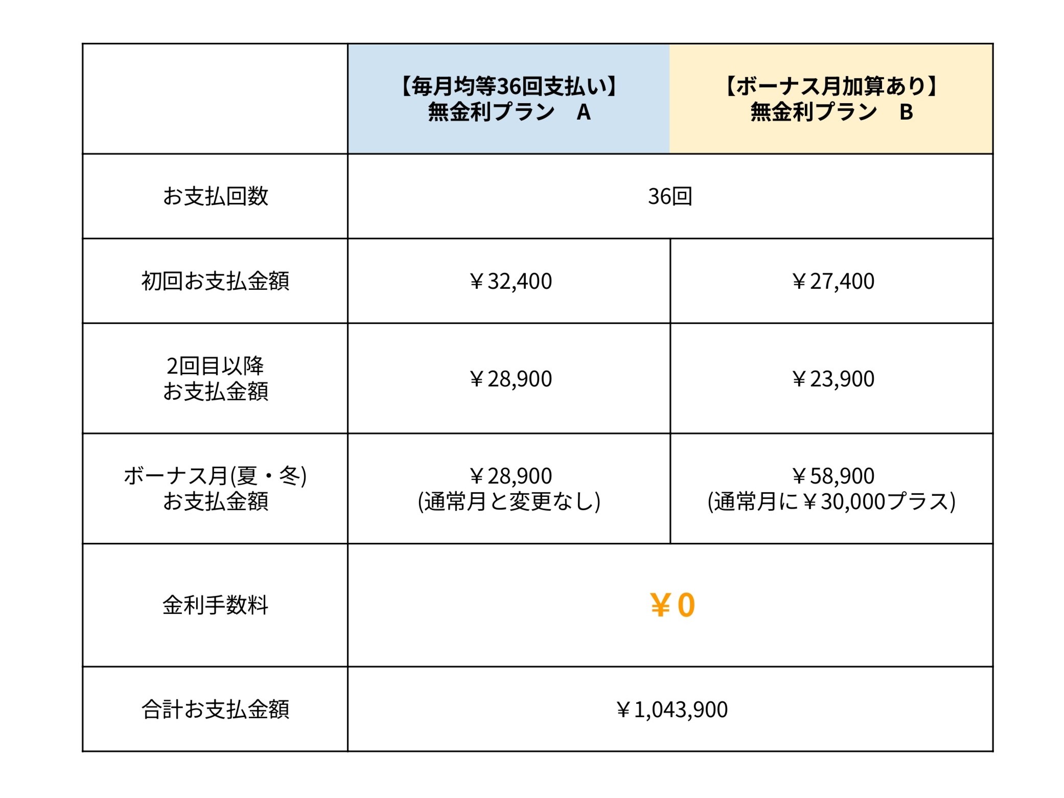 無金利プランでは、下記のようなお支払プランをご提案できます!