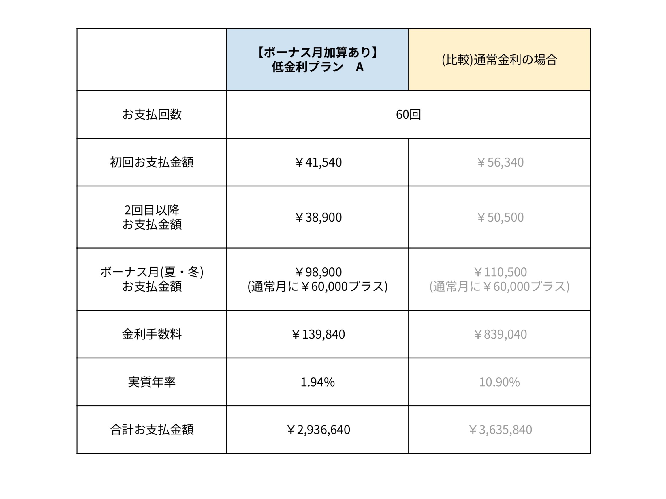 毎月コツコツ・無理ない金額でお支払頂く低金利プランがオススメです!