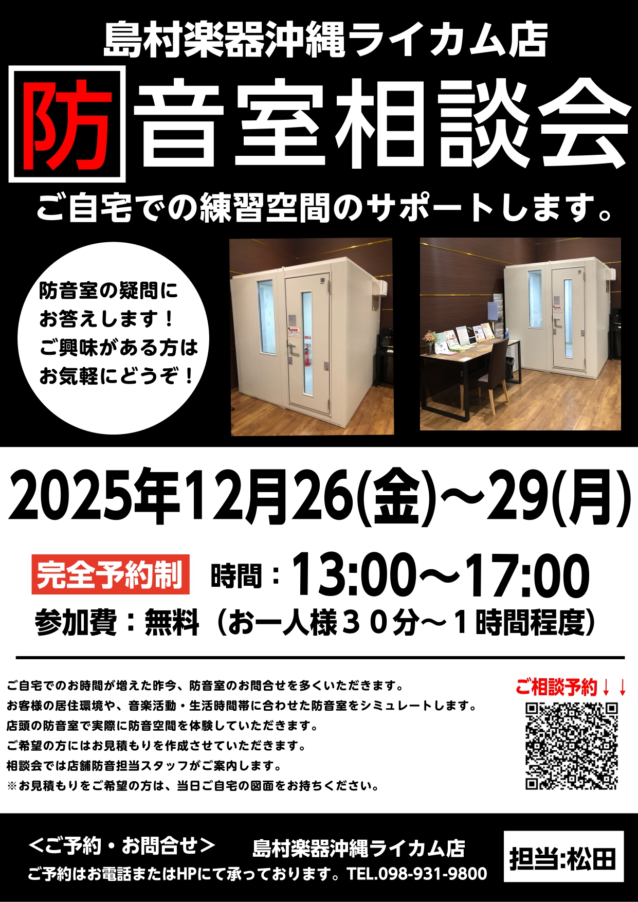 2025/11/24更新★【防音室総合案内】イオンモール沖縄ライカム店防音室展示中!相談会実施中!!沖縄で防音を相談するなら当店で♪