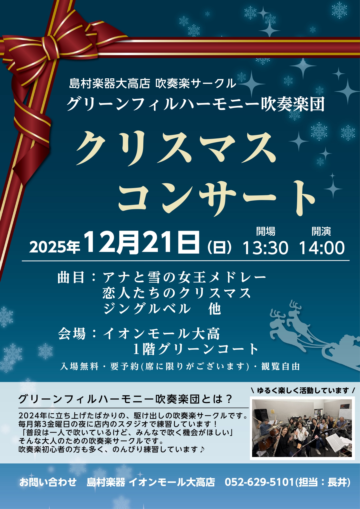 ♪12/21(日)クリスマスコンサート開催♪【グリーンフィルハーモニー吹奏楽団】