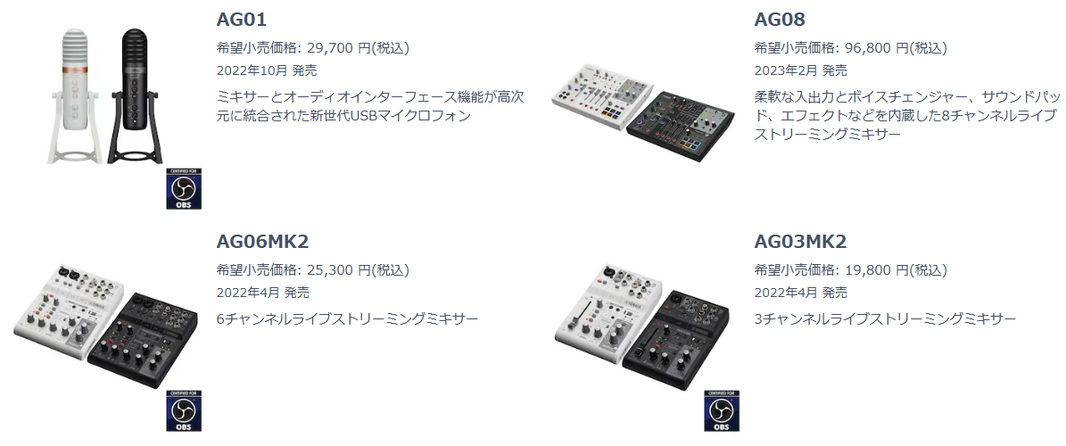 ※AGシリーズ以外にもYAMAHAのUSBマイクやヘッドホン等も展示予定です!