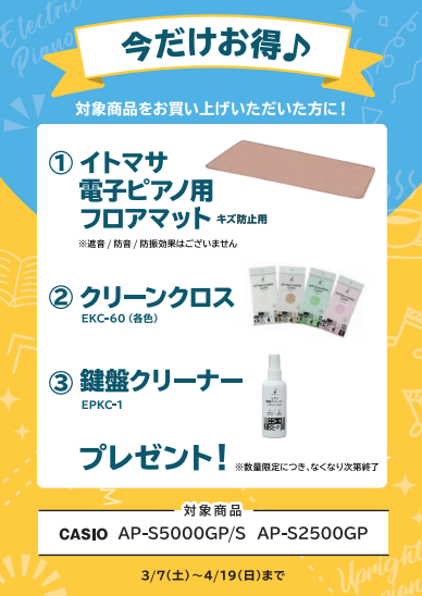 当店は、2026年3月7日(土)~4月19日(日)まで『電子ピアノ 新生活応援フェア』を開催しております🎉