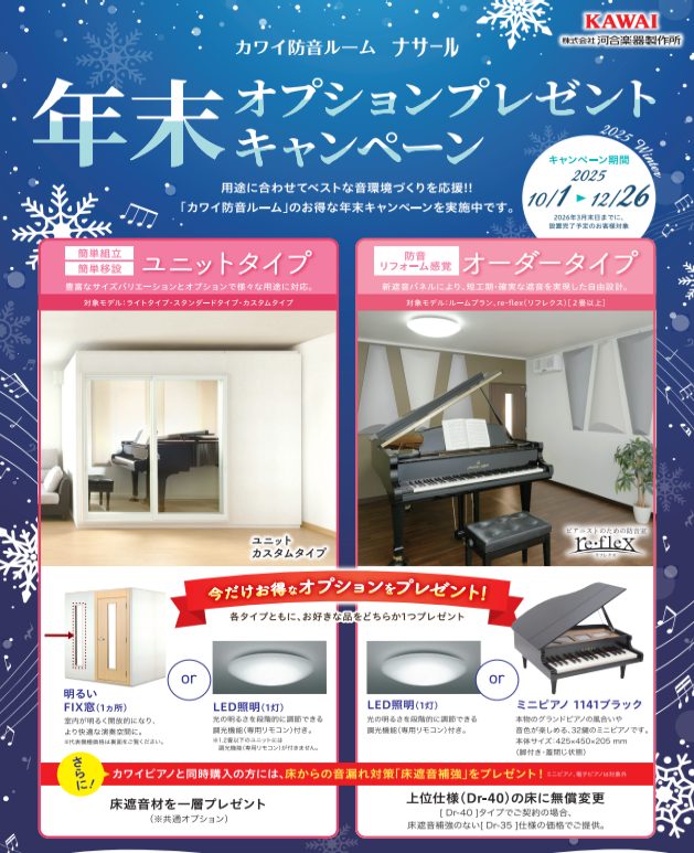 ※KAWAI防音ユニットの展示は無いため、ご説明のみとなります
