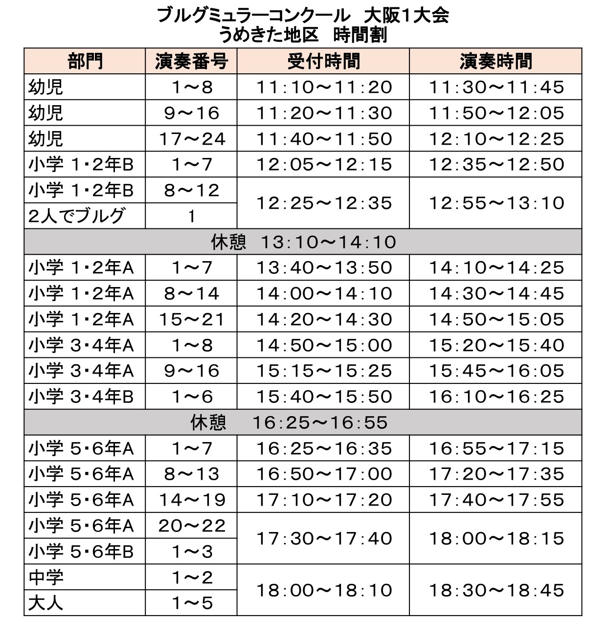 審査開始後、一切会場への入場は出来ません。 必ず「演奏時間」までにご着席ください。