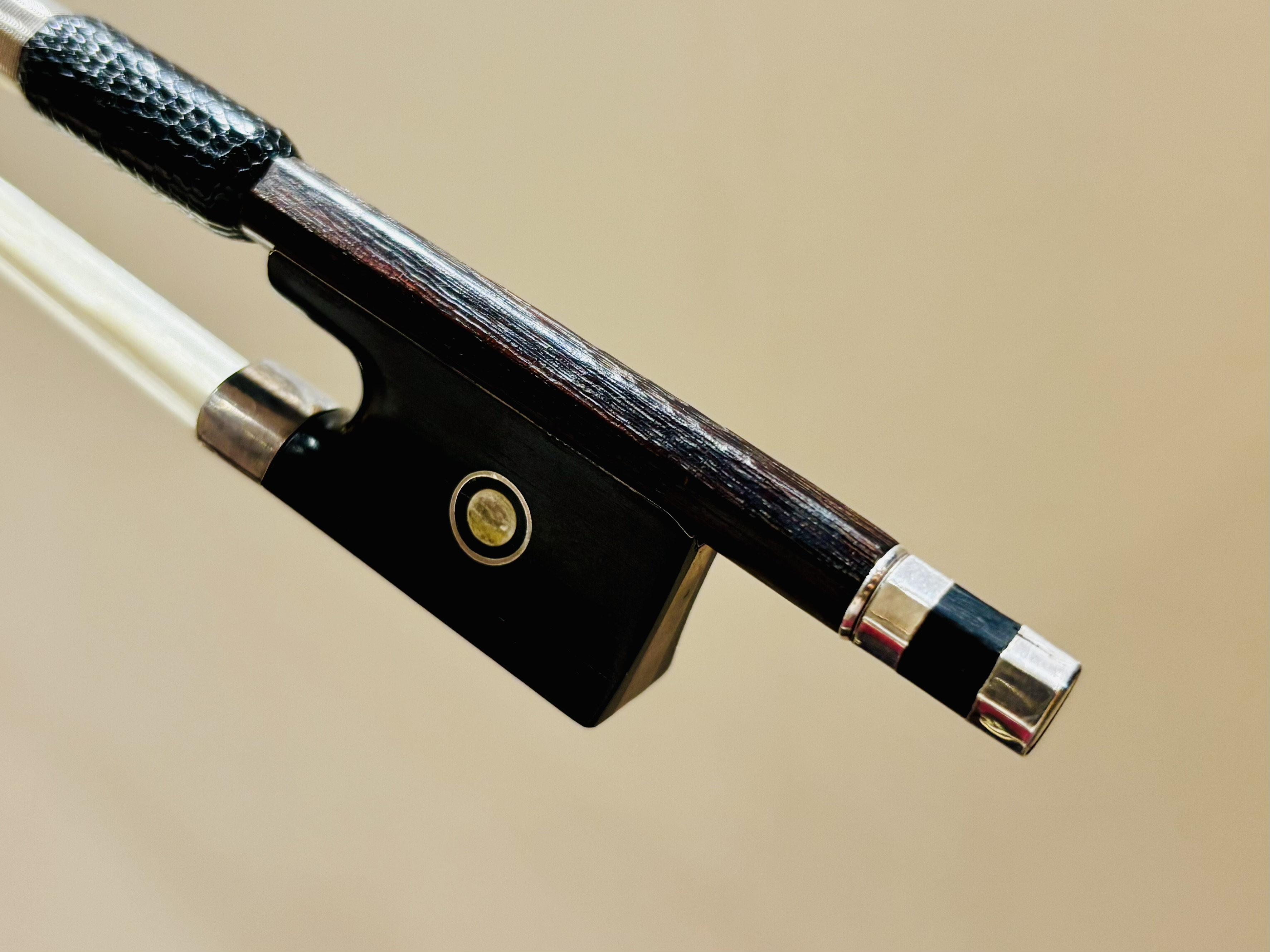 独立して活動した期間が非常に短かったため、現存する彼のオリジナル作品は極めて希少です。伯父から受け継いだフランス伝統の美学と、彼自身の繊細な職人技が融合したこの弓は、演奏家とコレクターの両者から高く評価されています。歴史的価値と実用性を兼ね備えた、フレンチ・ボウの逸品をぜひお手元でお確かめください。