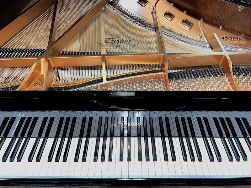 ボストンピアノは、スタインウェイの設計を踏襲したディープレックス・スケールによって、同じ価格帯のほかのピアノには見い出せない倍音の豊かな響きが加わっています。