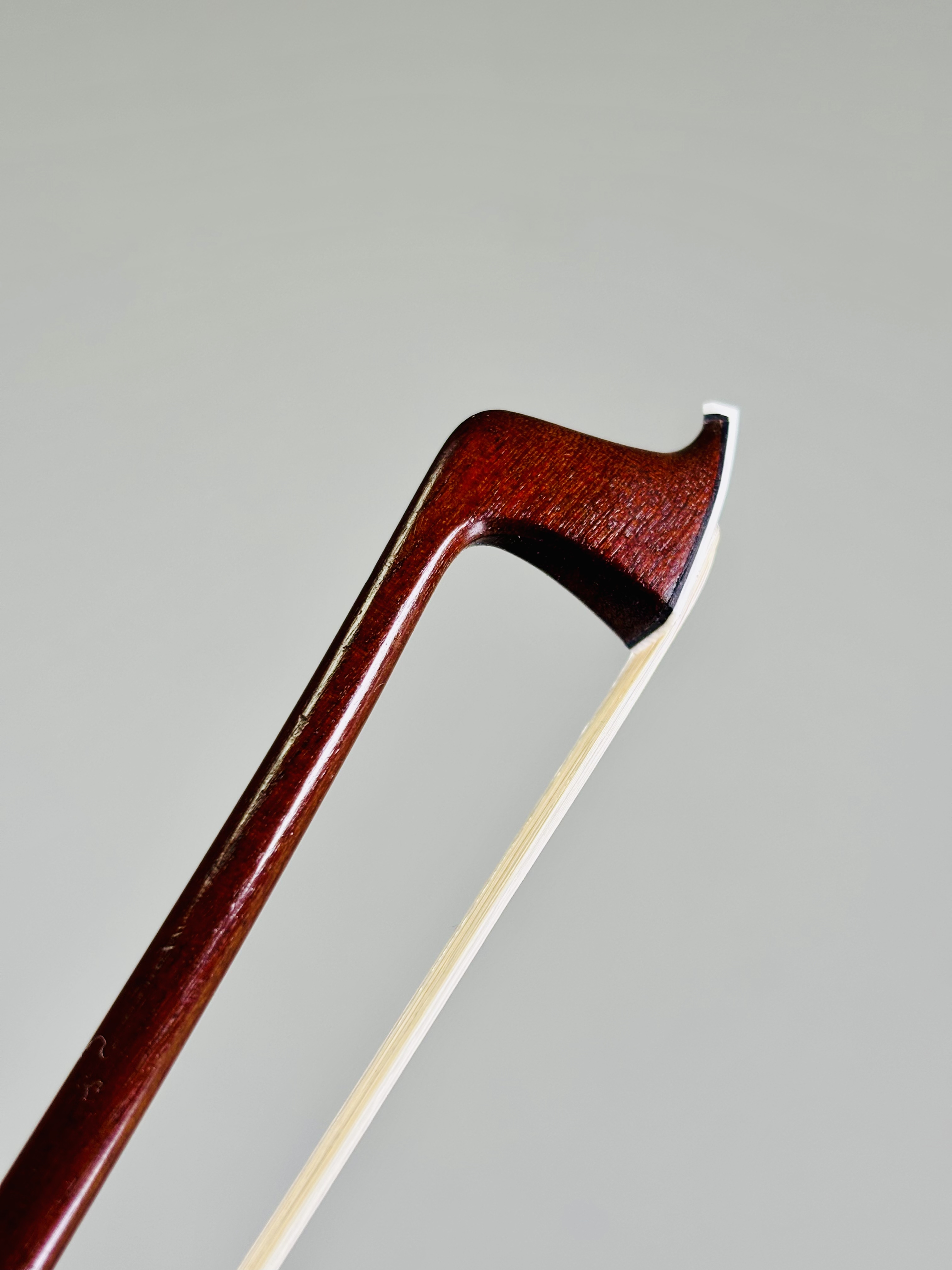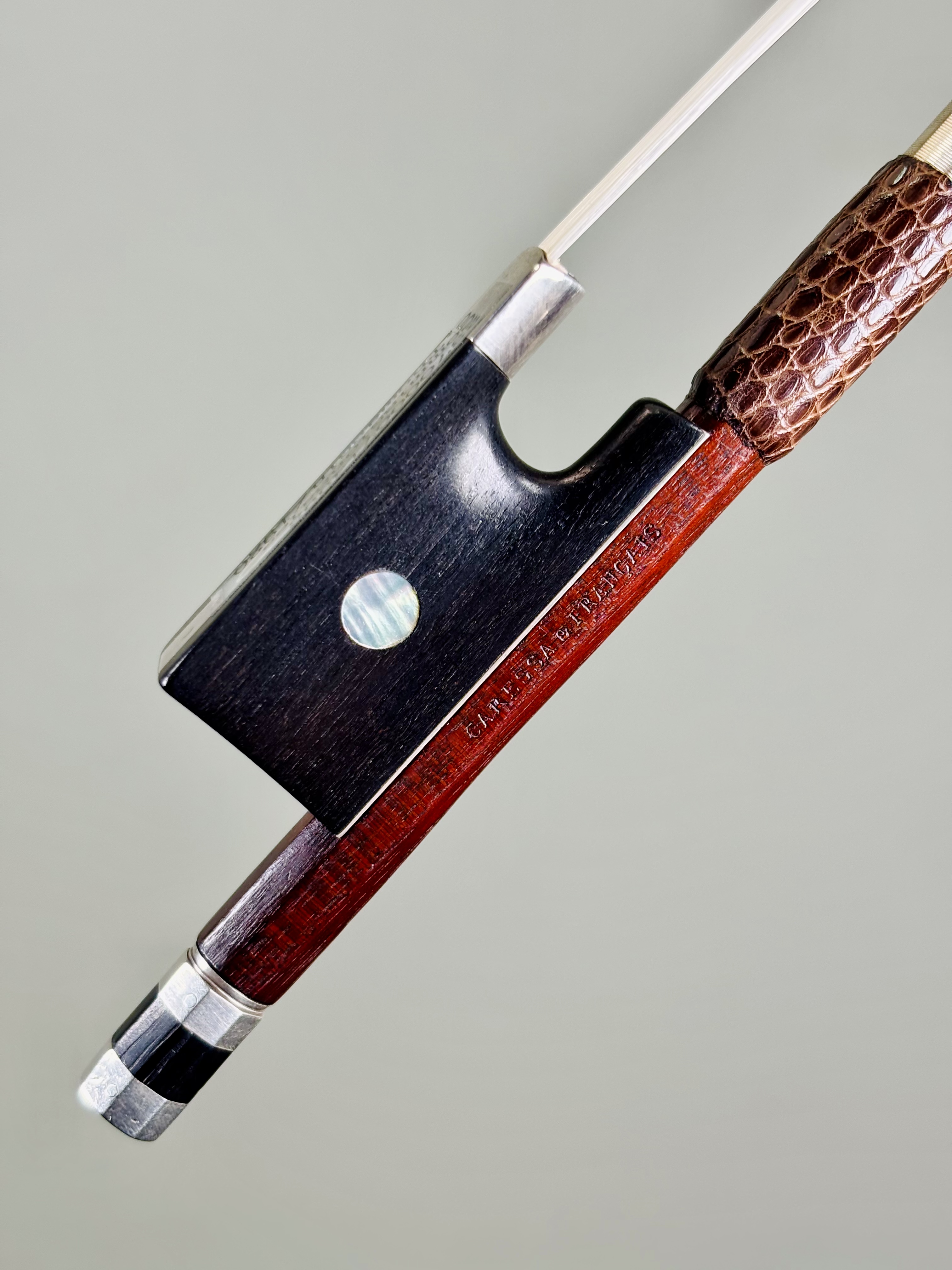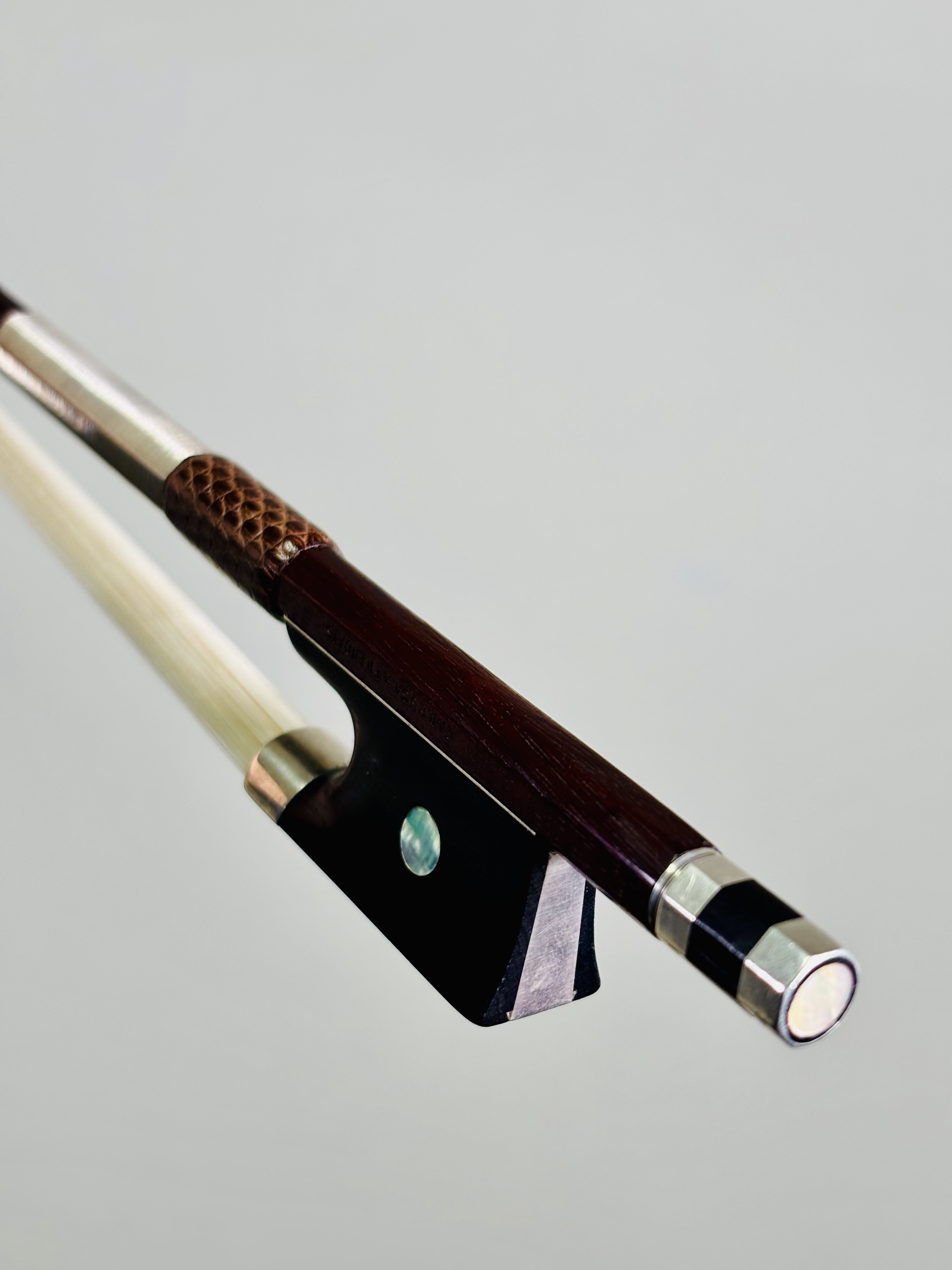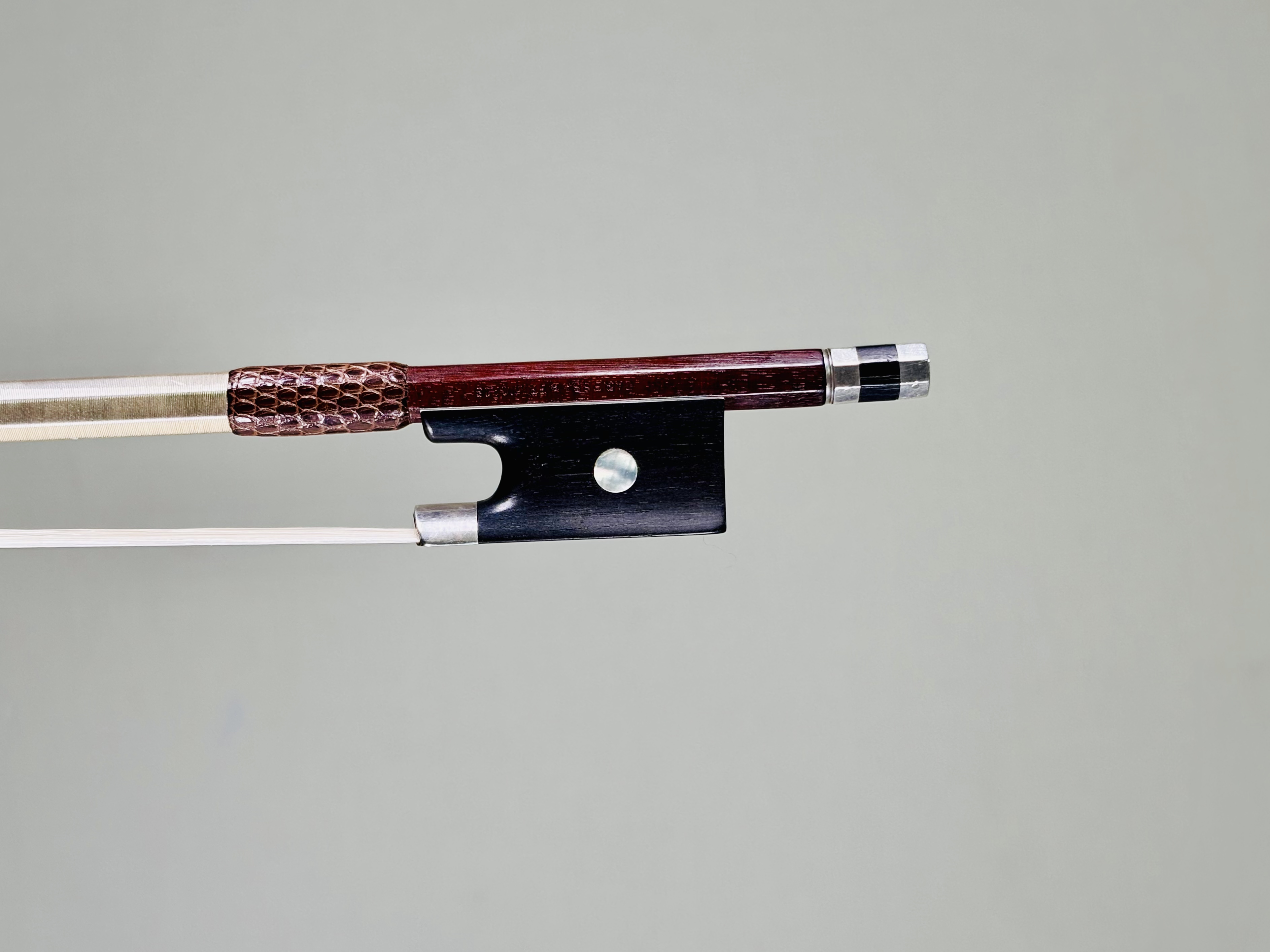 1901年に独立した後の作品、とりわけ1920年前後の成熟期の弓には、Francois Nicolas Voirin(フランソワ・ニコラ・ヴォアラン)から受け継がれた優美なヘッド形状と、トルテ以降の力強いスティック設計が、驚くべき高次元で融合しています。特に、Caressa & Francais(カレッサ&フランセ)といった名門ディーラーのために製作された個体には、現代では入手不可能なほど高密度なフェルナンブーコが惜しみなく投入されたことが窺い知れます。彼の弓は単なる道具ではなく、パリの黄金時代を音色として現代に伝える「歴史の証人」とも言える存在です。