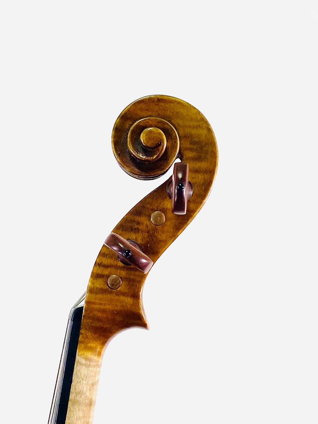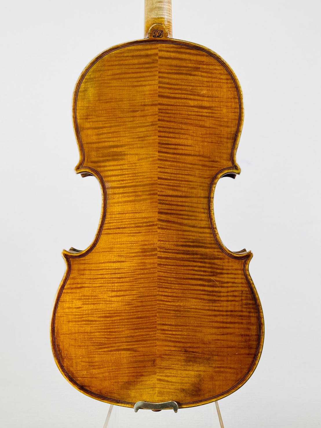 本作のモデルは、マントヴァ派の権威であり名鑑定家としても知られるFrancesco Siprani(フランチェスコ・シプラーニ)教授が秘蔵していた、父:Gaetano Gadda(ガエタノ・ガダ)の傑作です。マリオはこの名器に深い敬意を払い、その魂を忠実に再現。マントヴァ派の情熱を封じ込めたような、力強くも色気ある響きを湛えた「歌うための相棒」として、成熟した演奏家にふさわしい一挺に仕上げました。